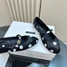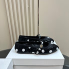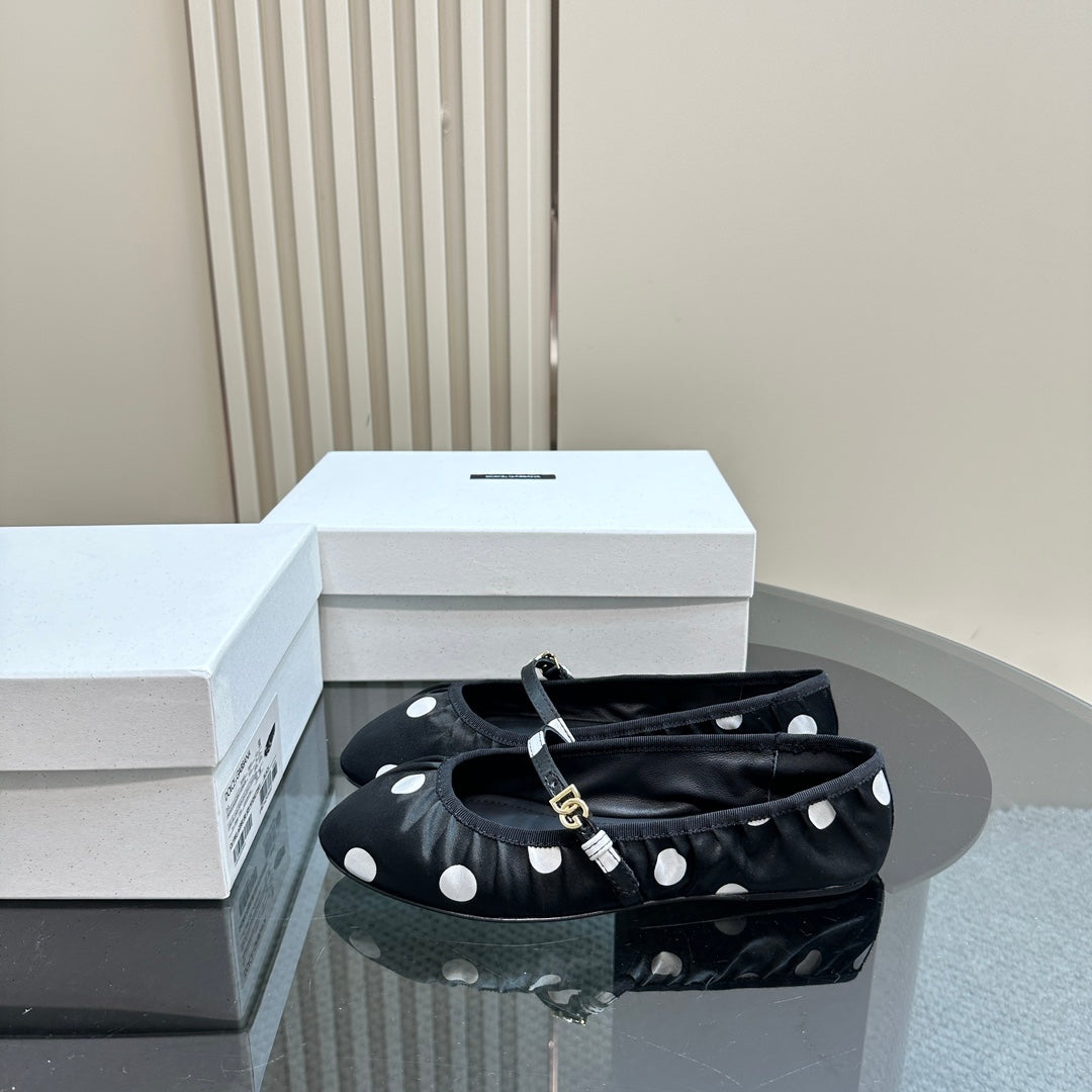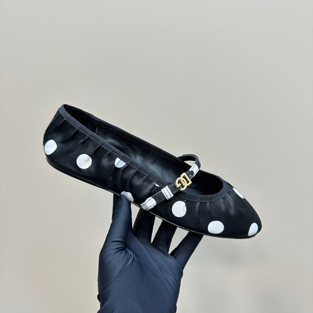 DC Polka-Dot Ballet Flats Black White Sheepskin & Silk 999234