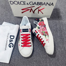 DC Portofino Sneakers White Red Floral-Print & Sheepskin 288469