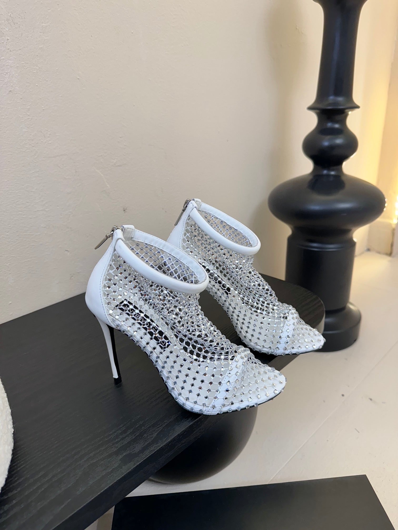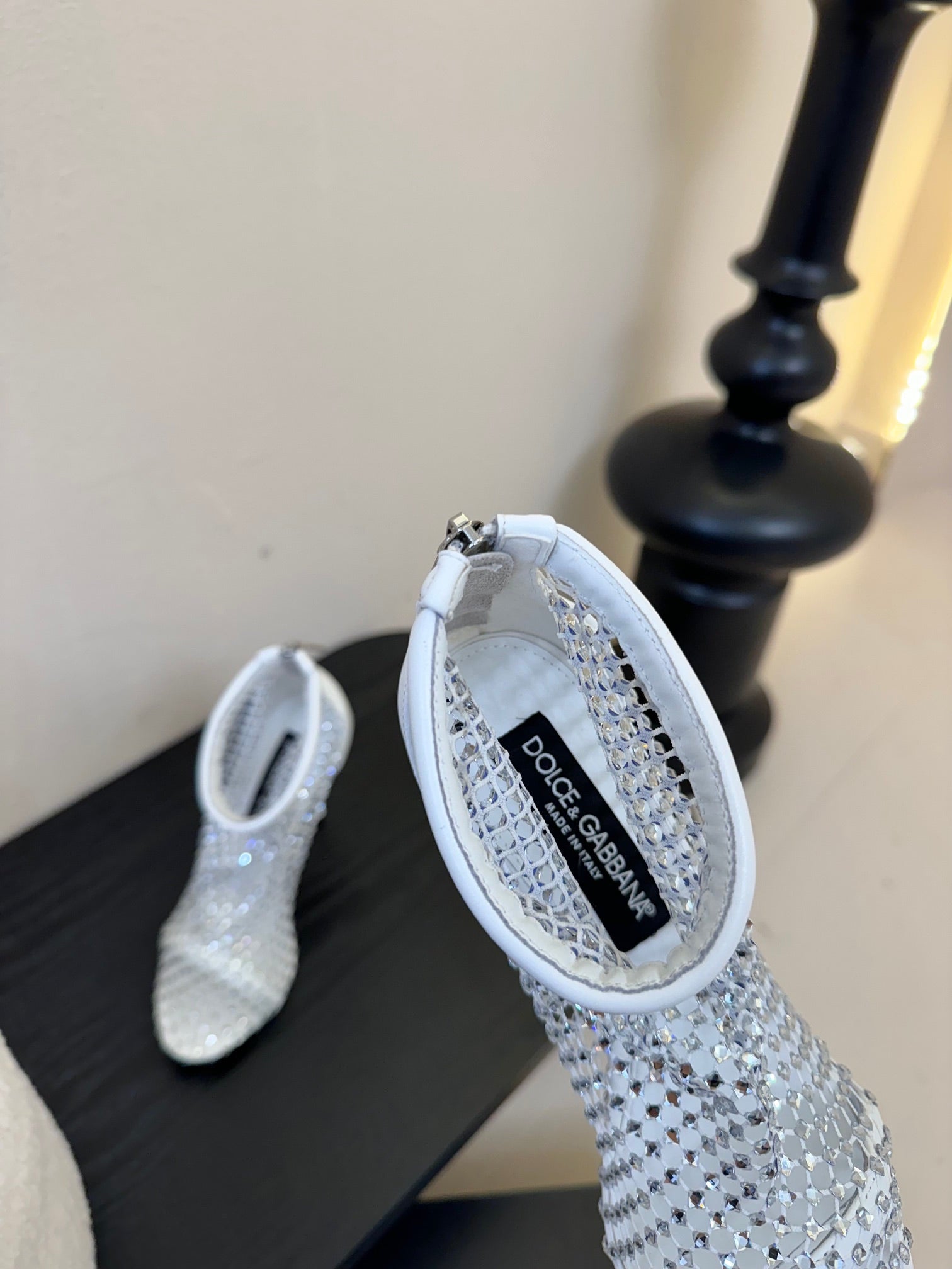 DC Pumps White Rhinestone Mesh & Sheepskin 297012