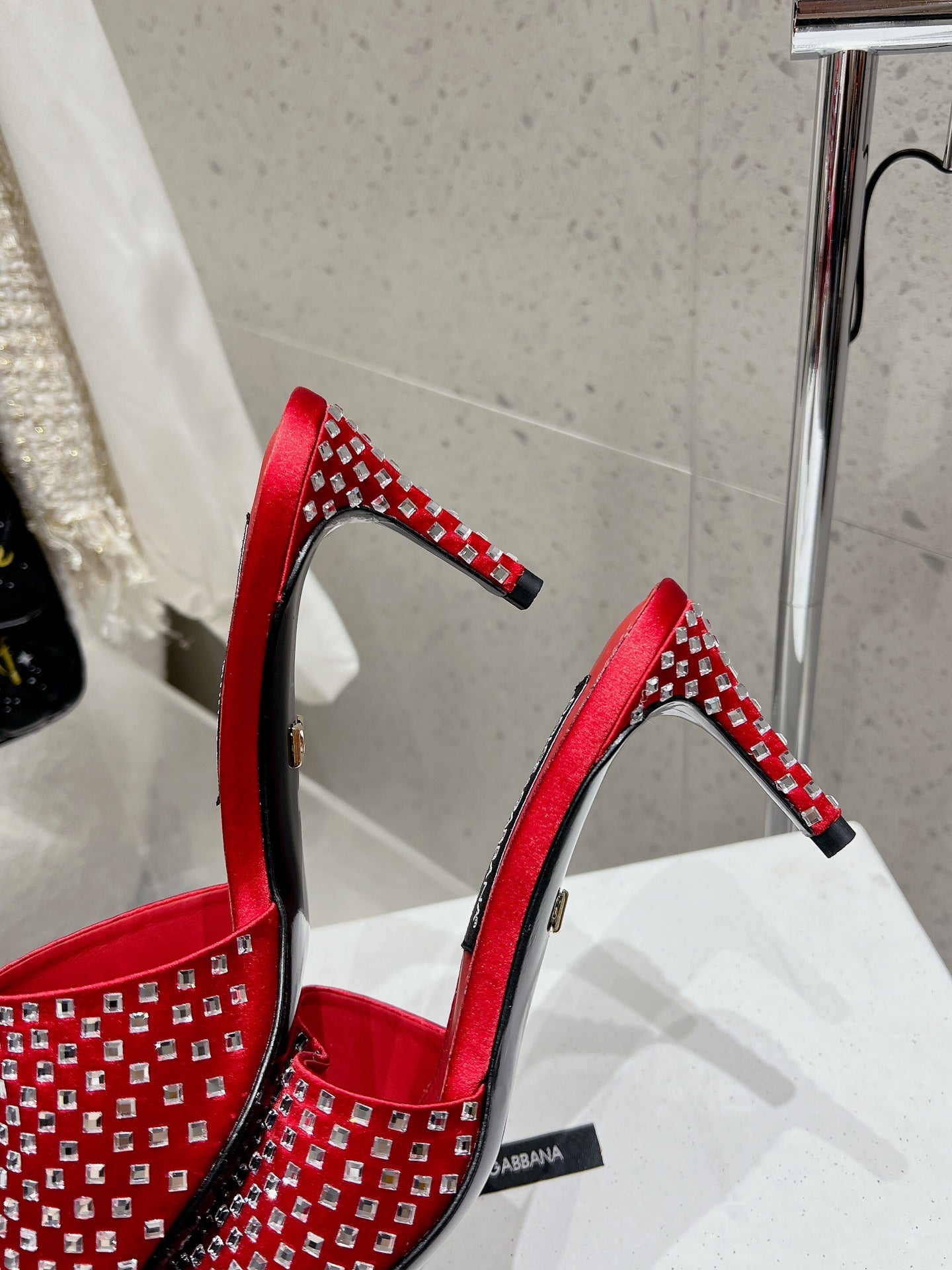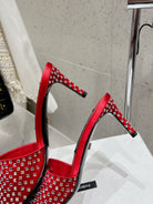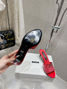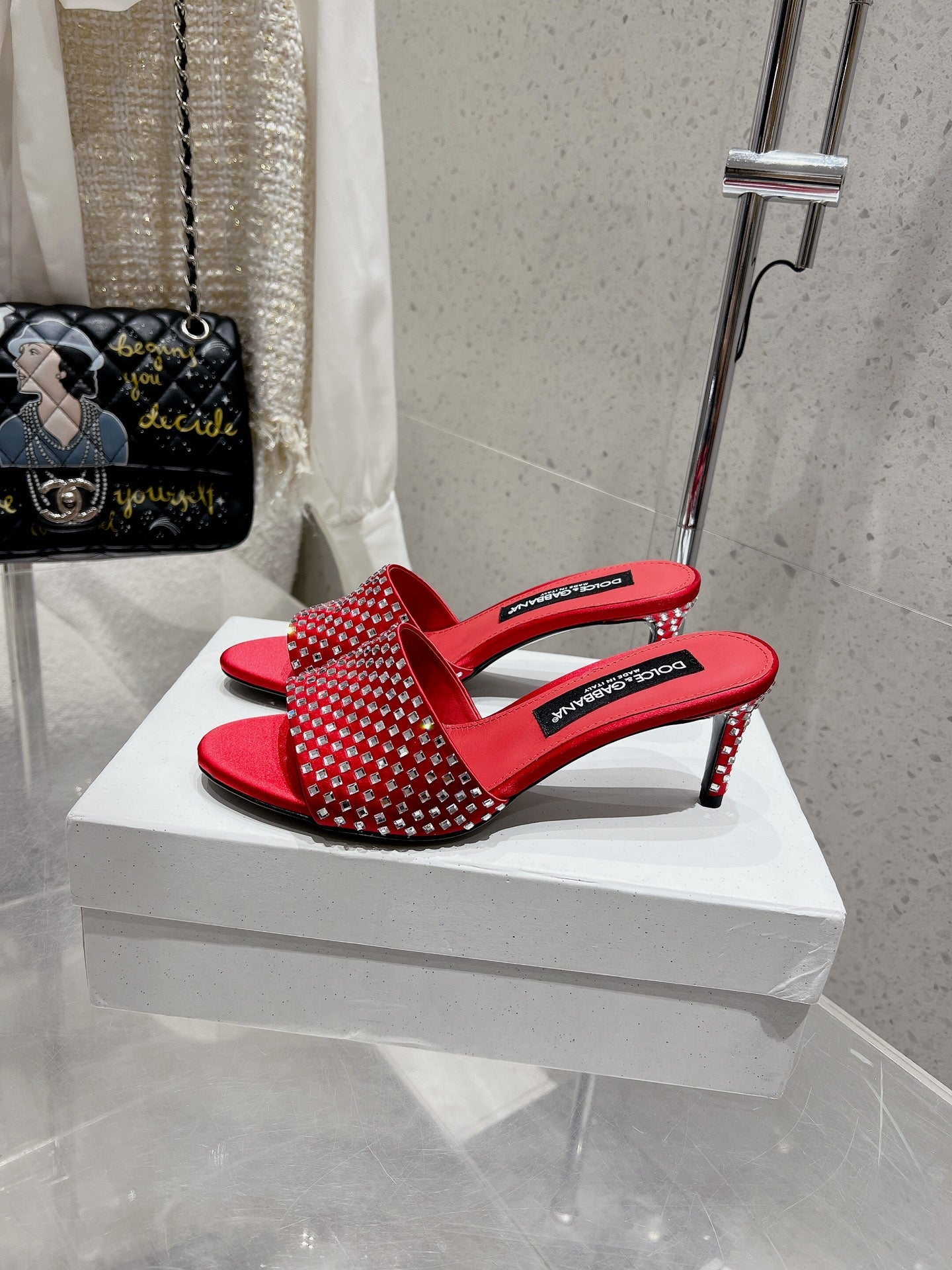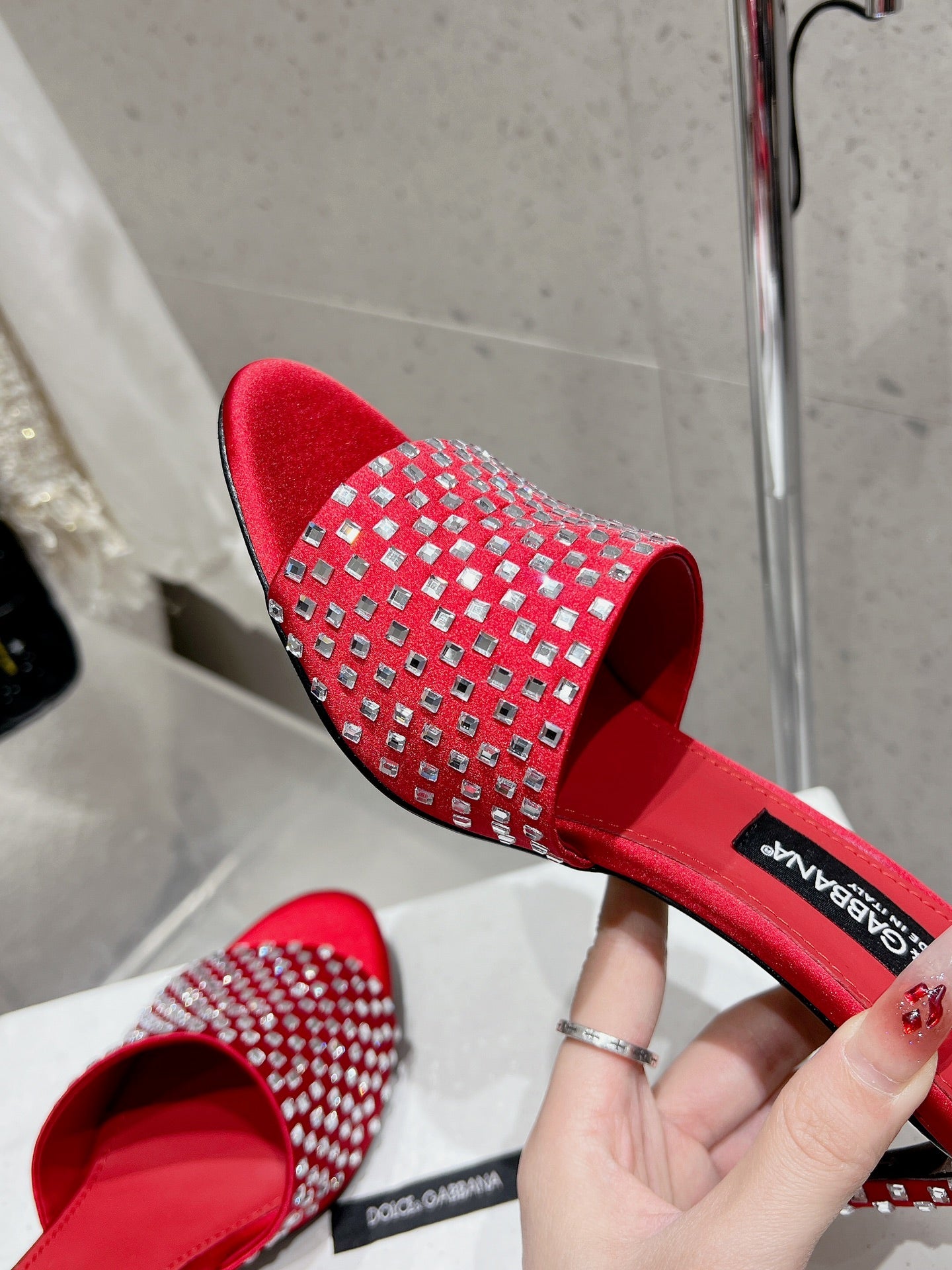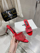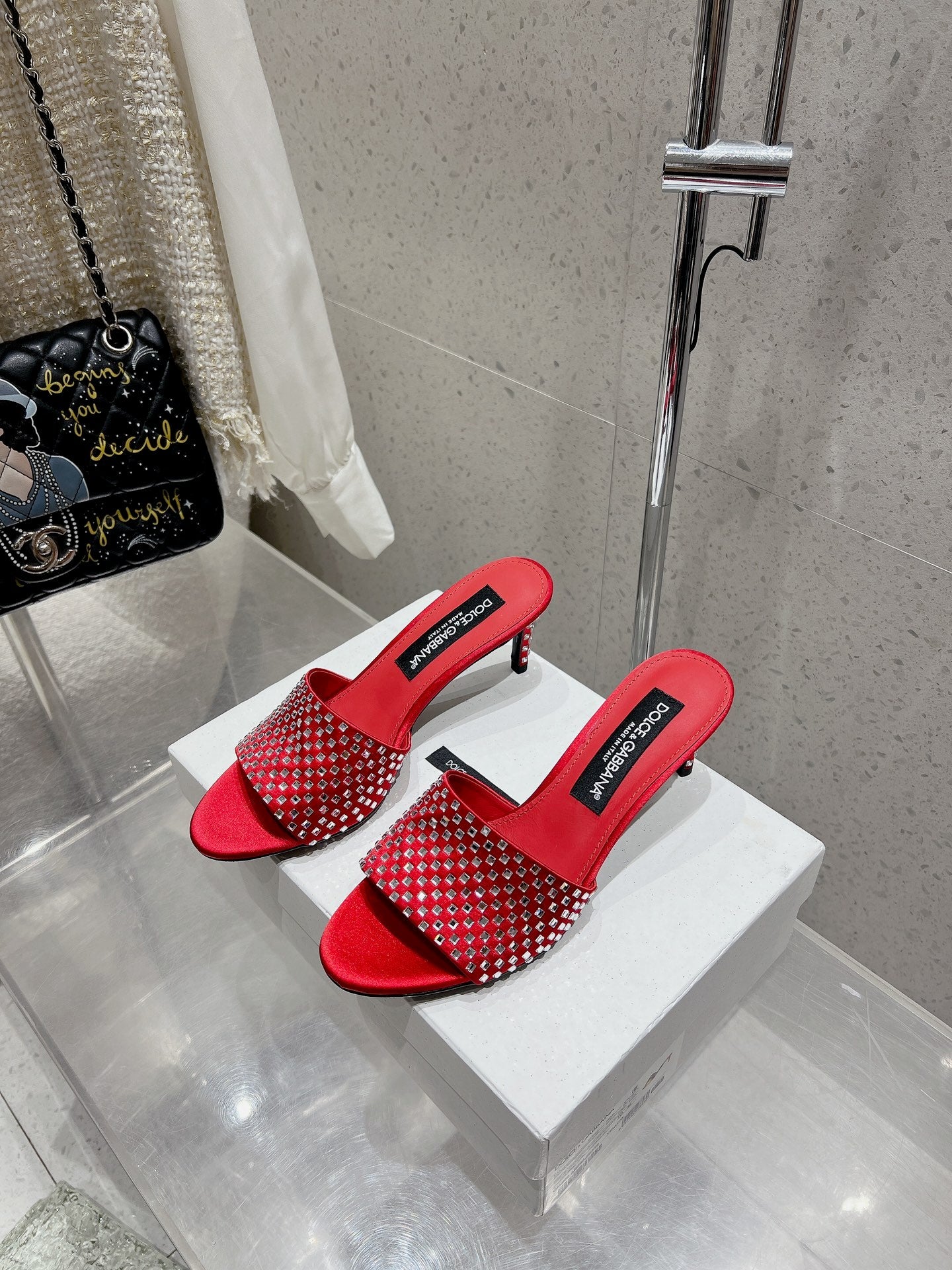 DC Rhinestone Mules 65mm Red Silk & Sheepskin 359515