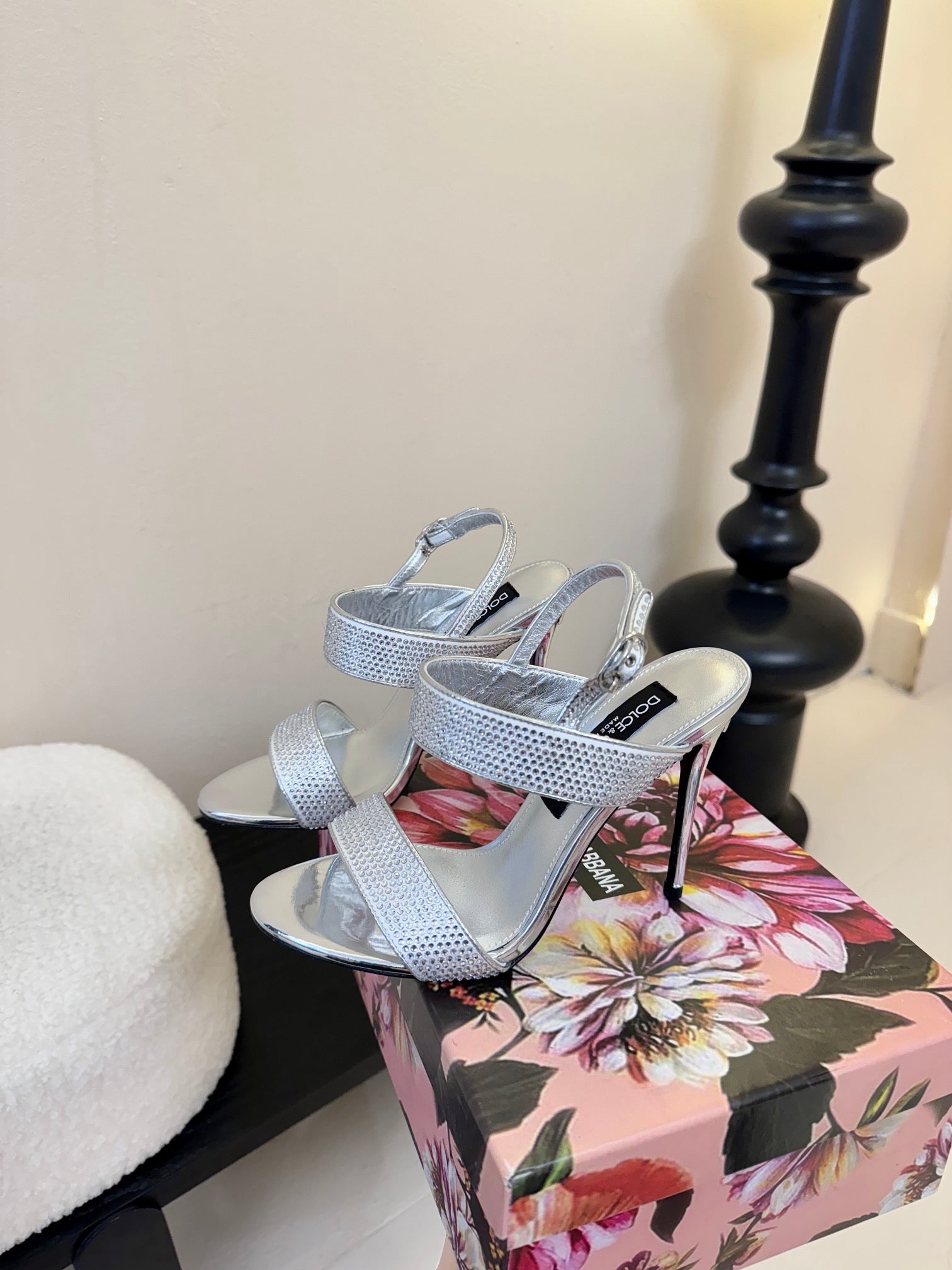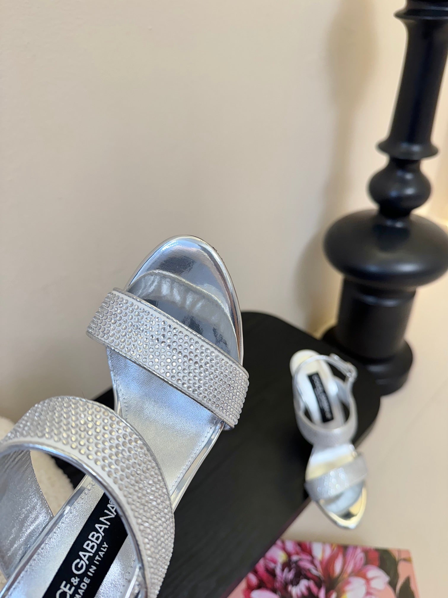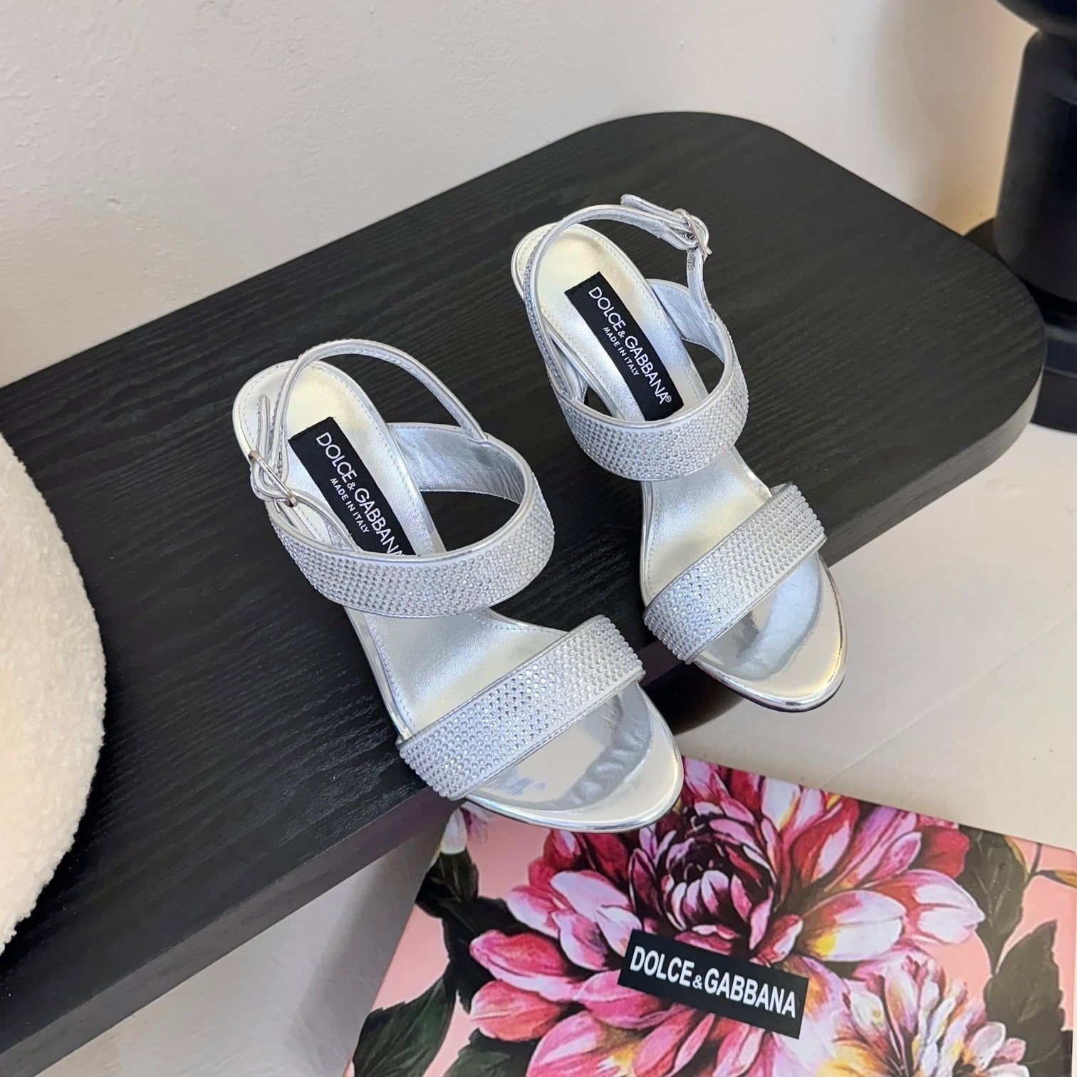 DC Satin Sandals Sliver Sheepskin & Fusible Rhinestones 313666