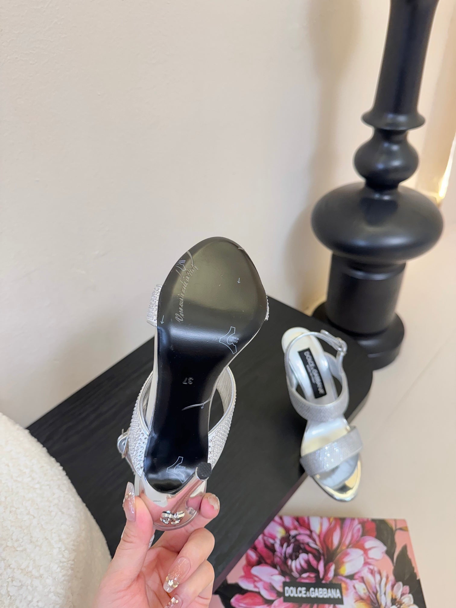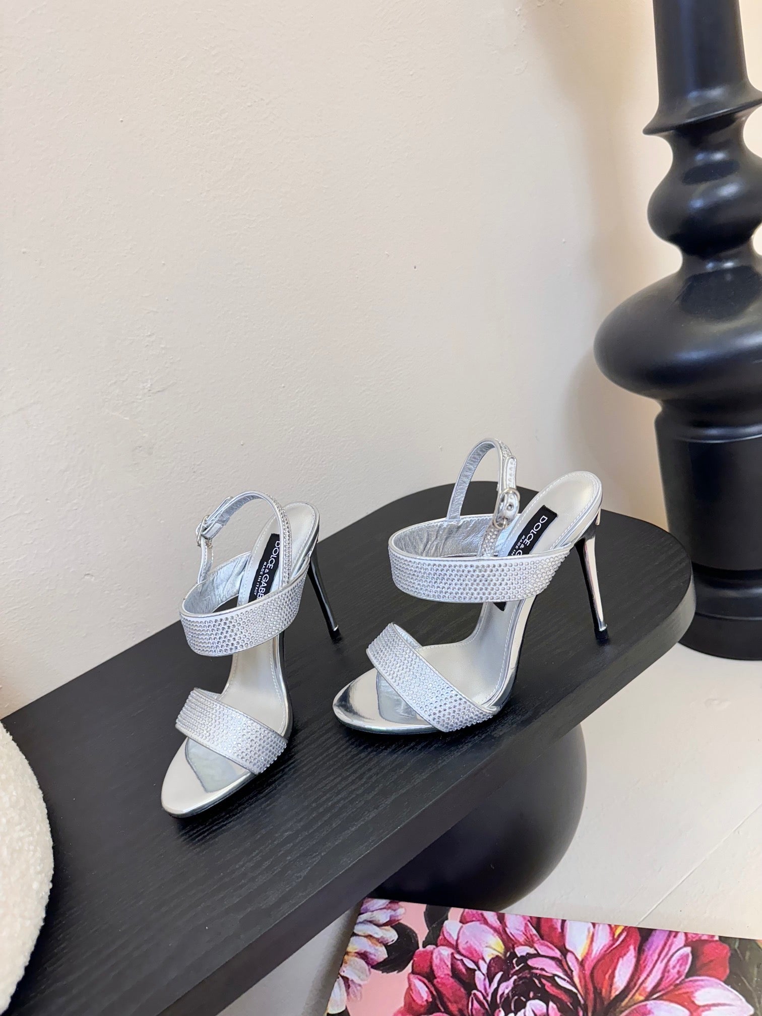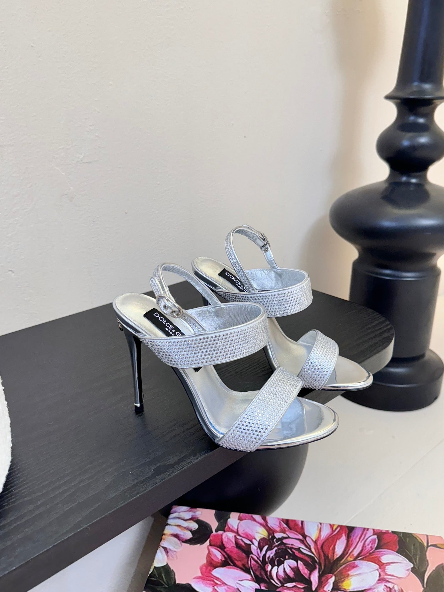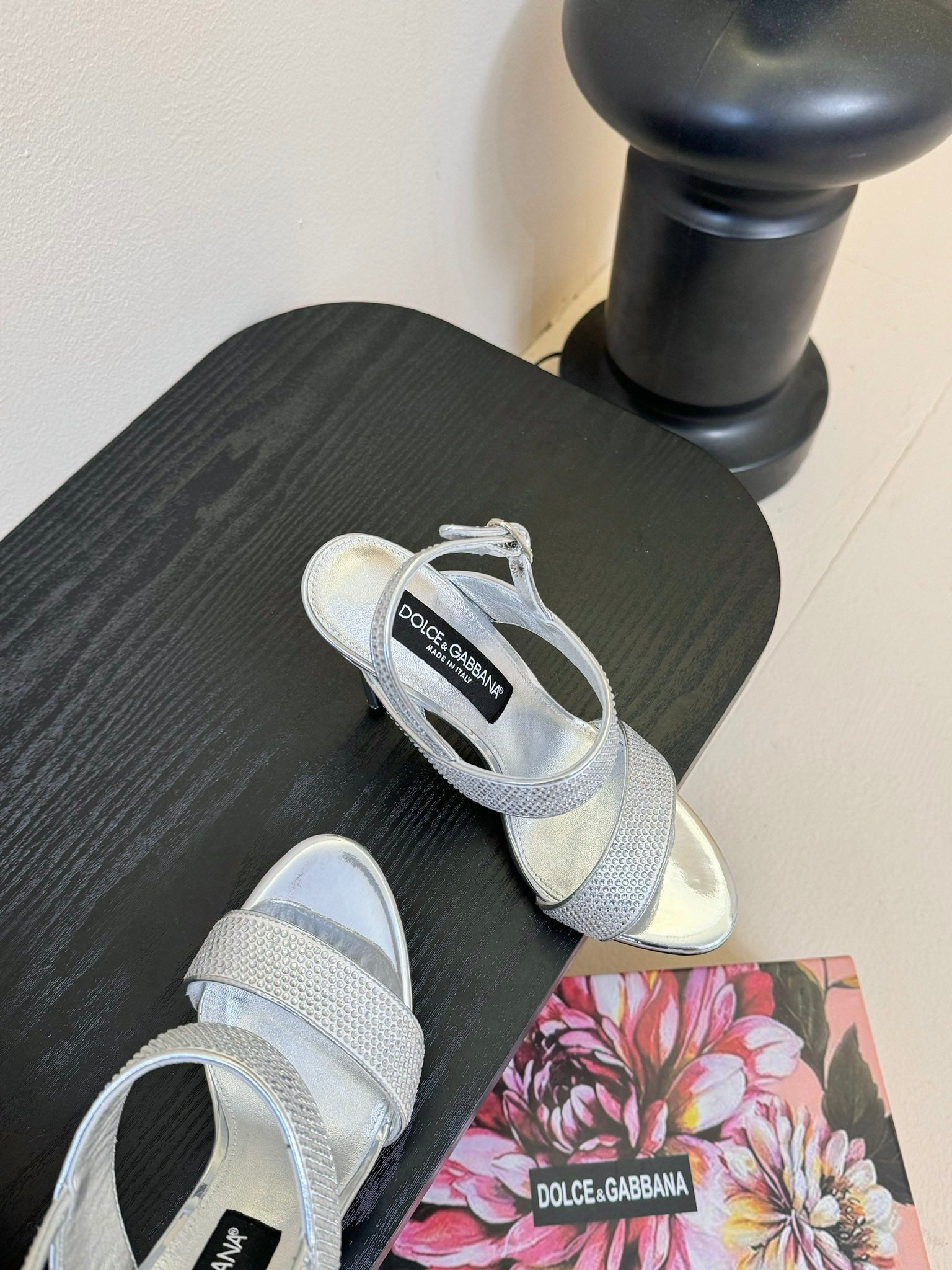DC Satin Sandals Sliver Sheepskin & Fusible Rhinestones 313666