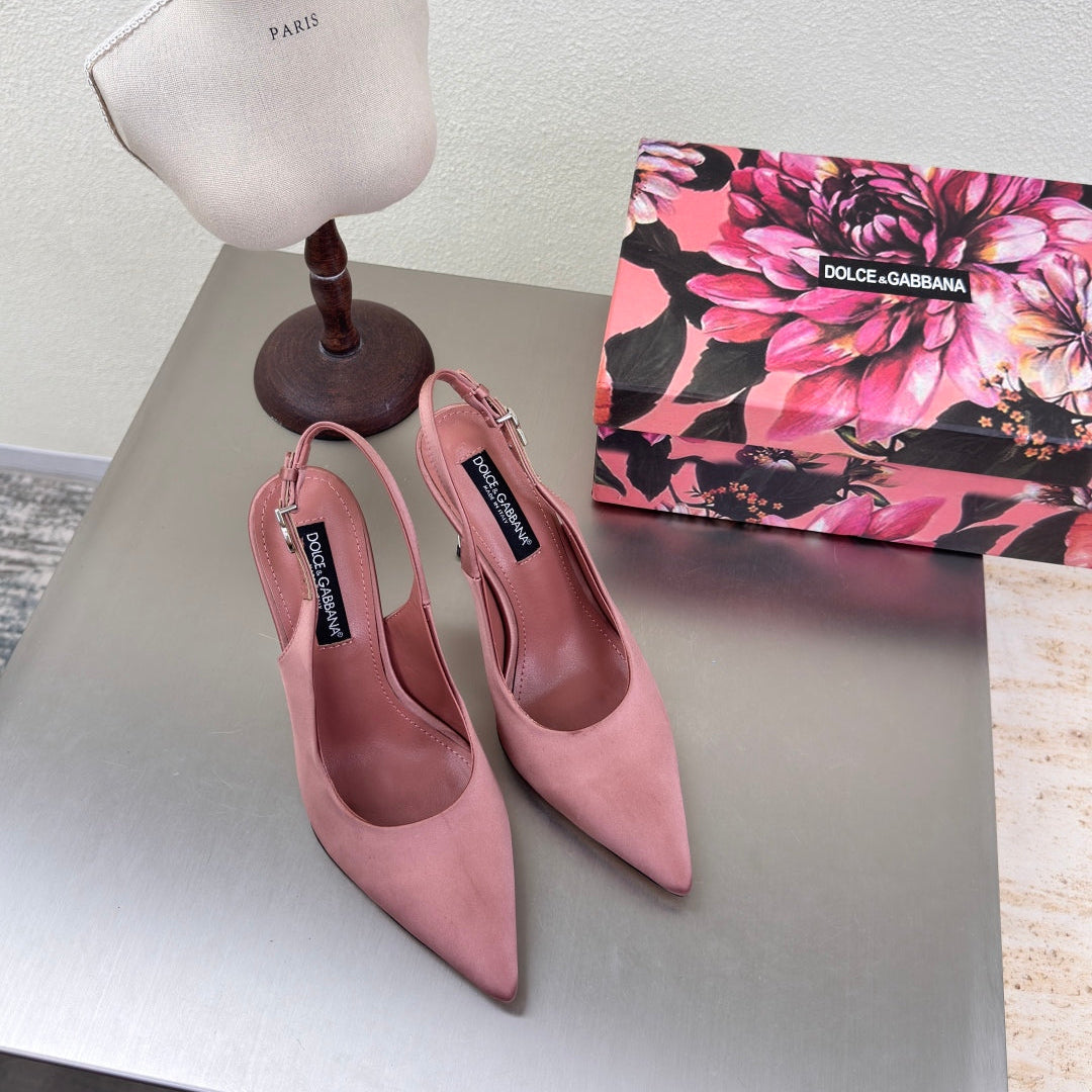 DC Slingback Pumps Pink Silk & Sheepskin 343142