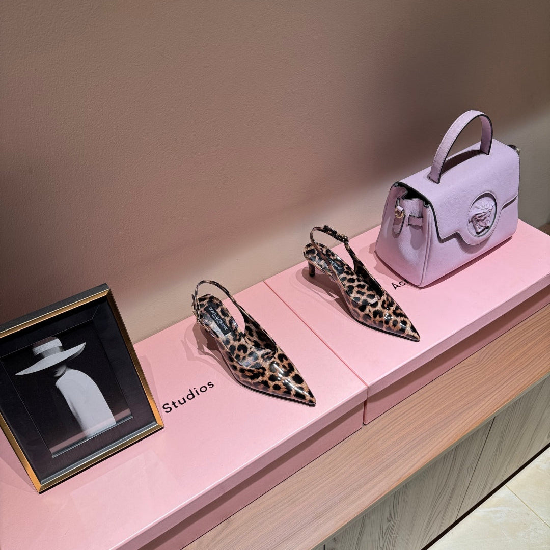 DC Slingback Pumps 65mm Leopard-Print Genuine And Sheepskin 379286