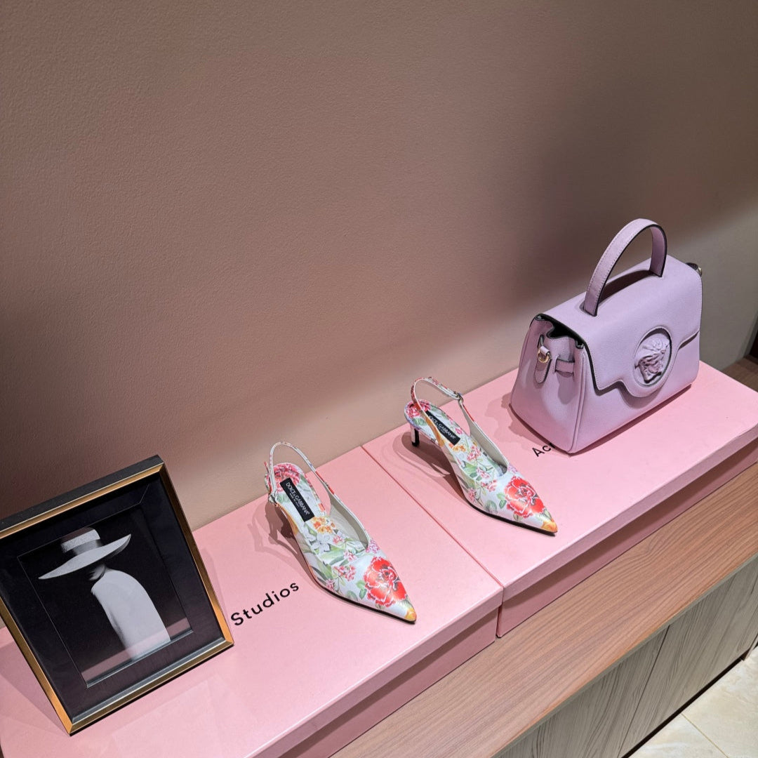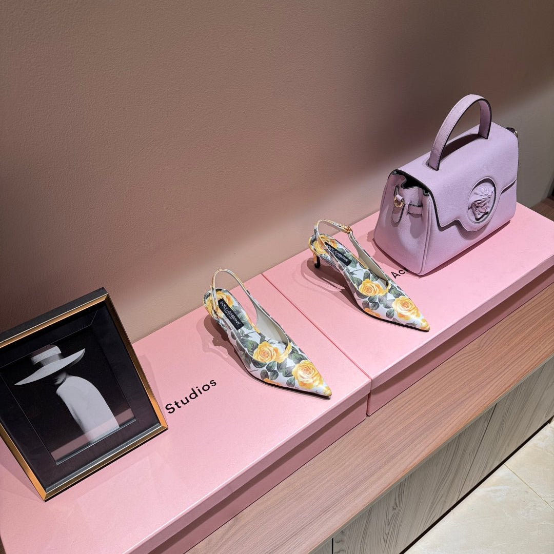 DC Slingback Pumps 65mm Yellow Rose-Print Genuine And Sheepskin 379287