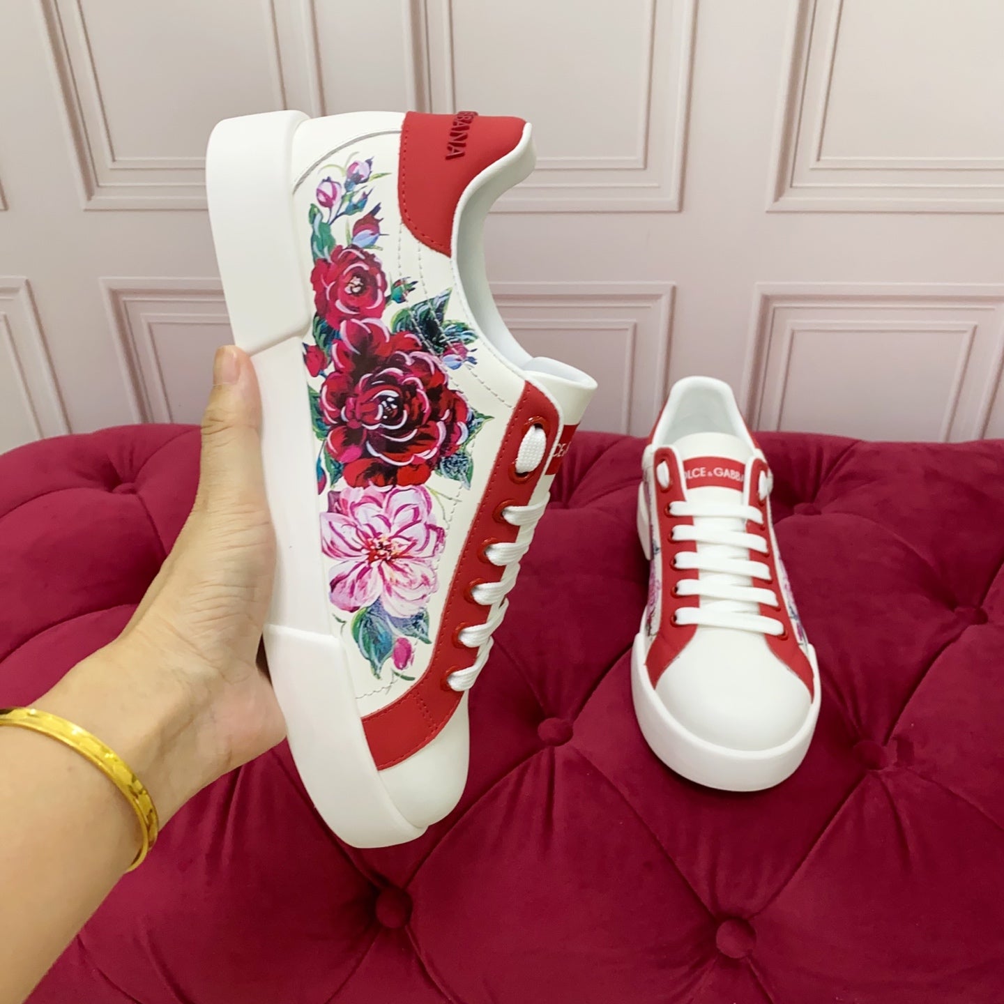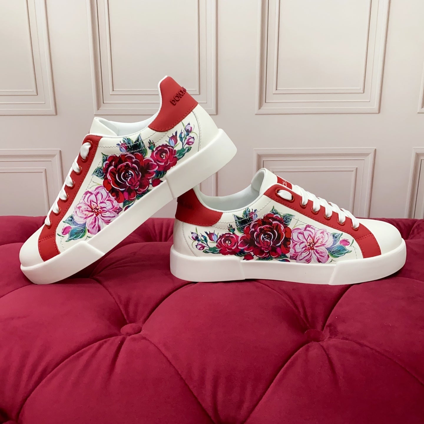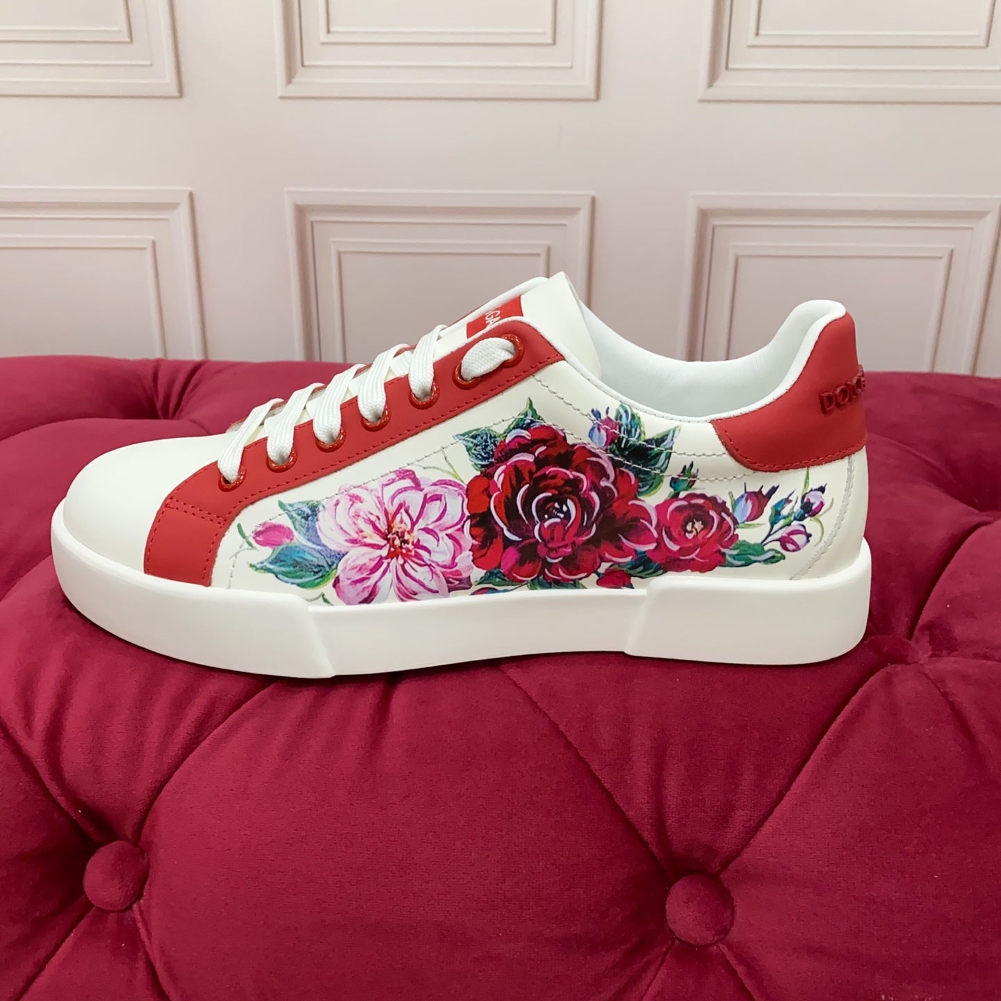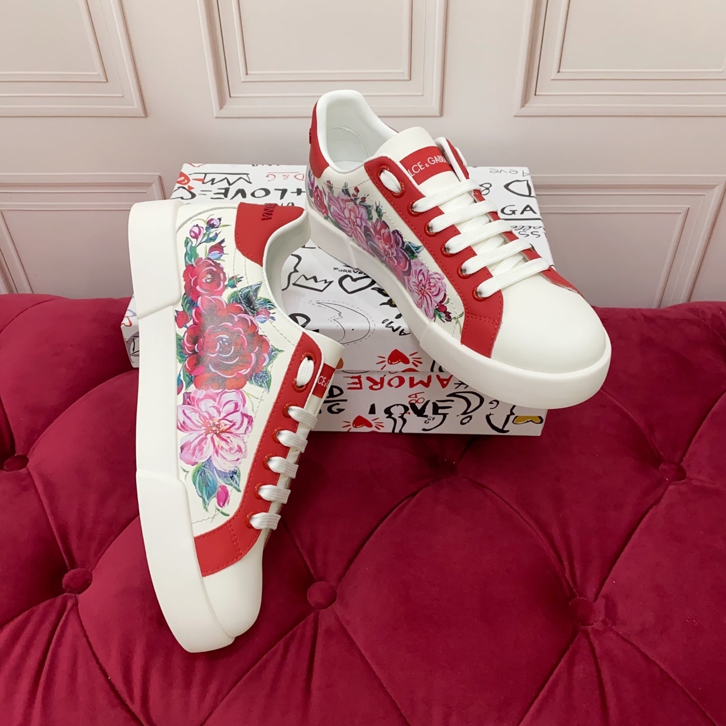 DC 25 Portofino Sneakers White Red Floral-Print Cowhide 354914