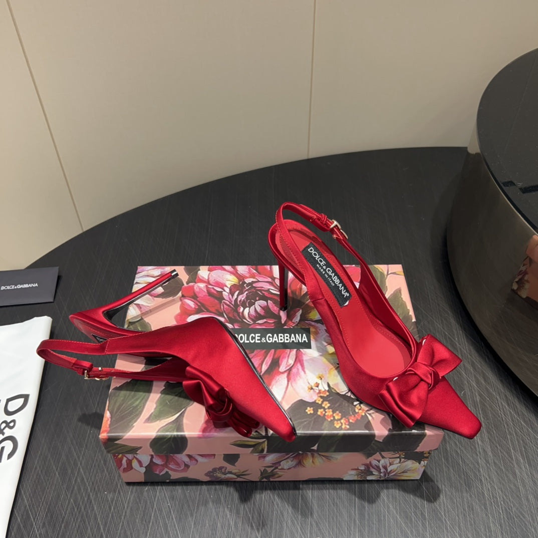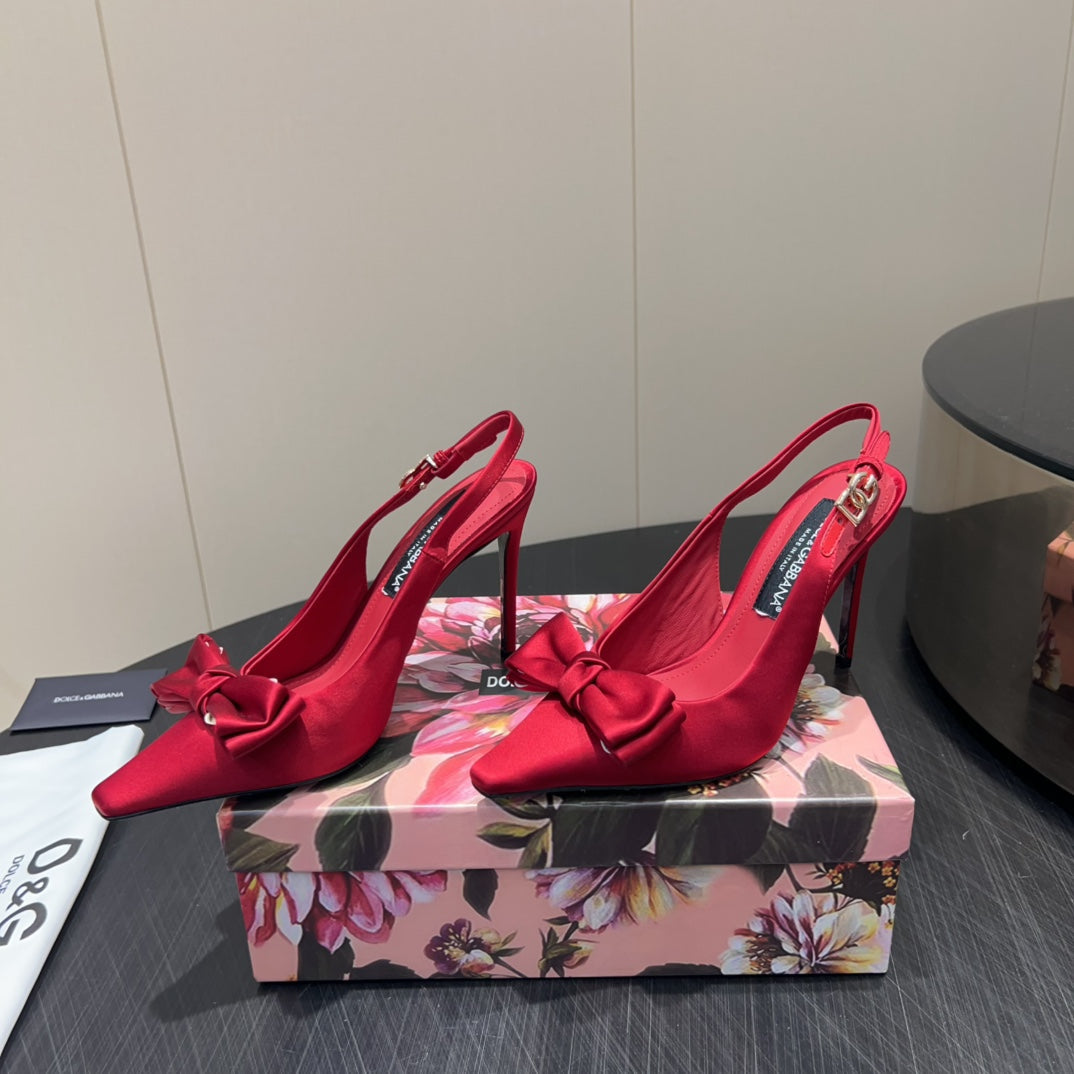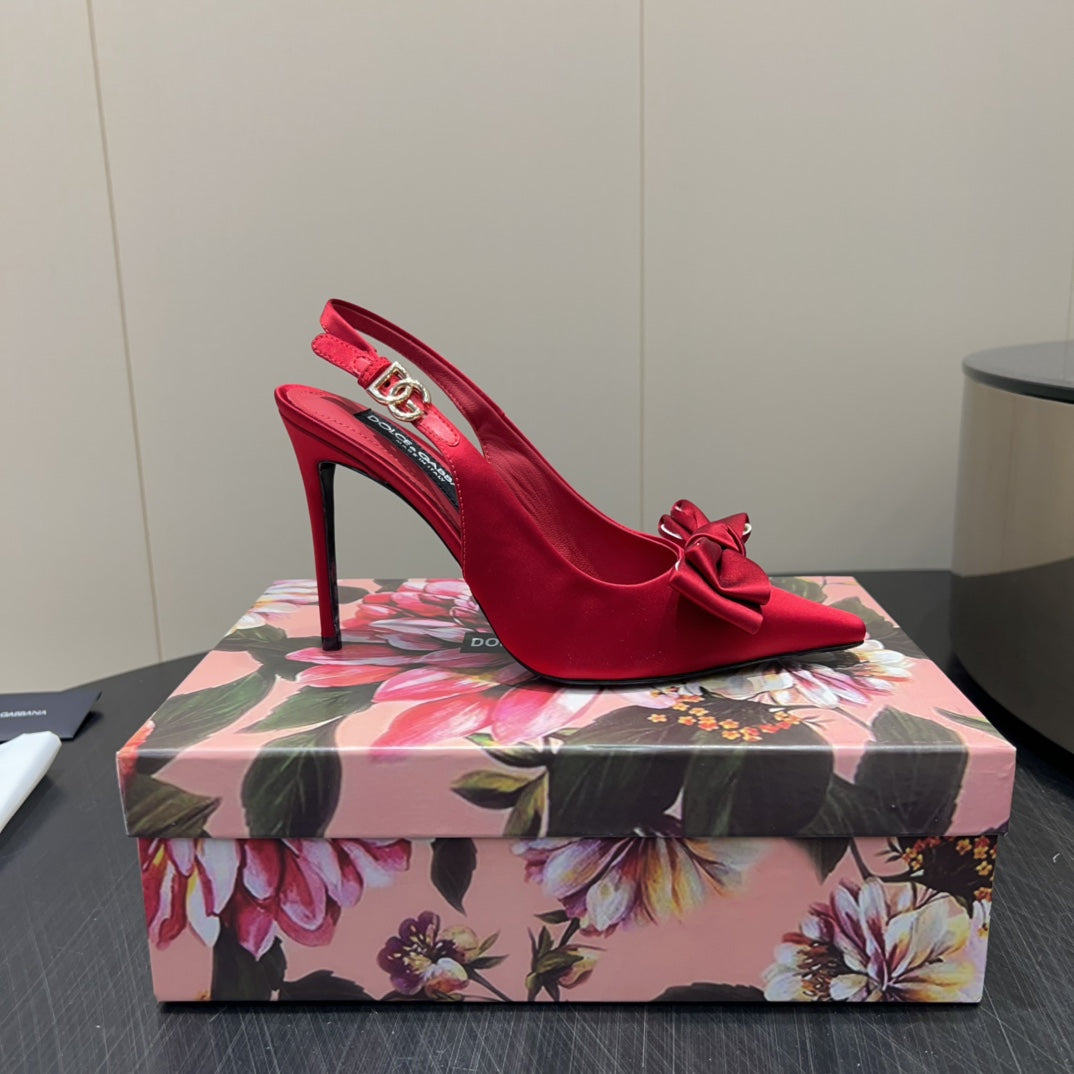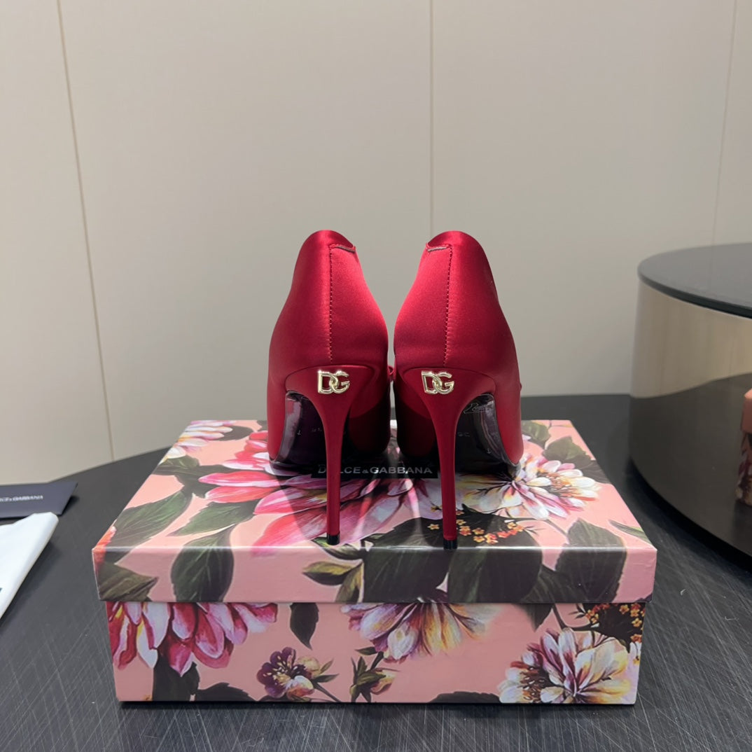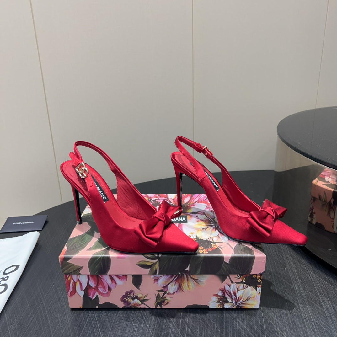 DC 25 Toe Bow High Heel Shoes 100mm Red Silk And Sheepskin 381613