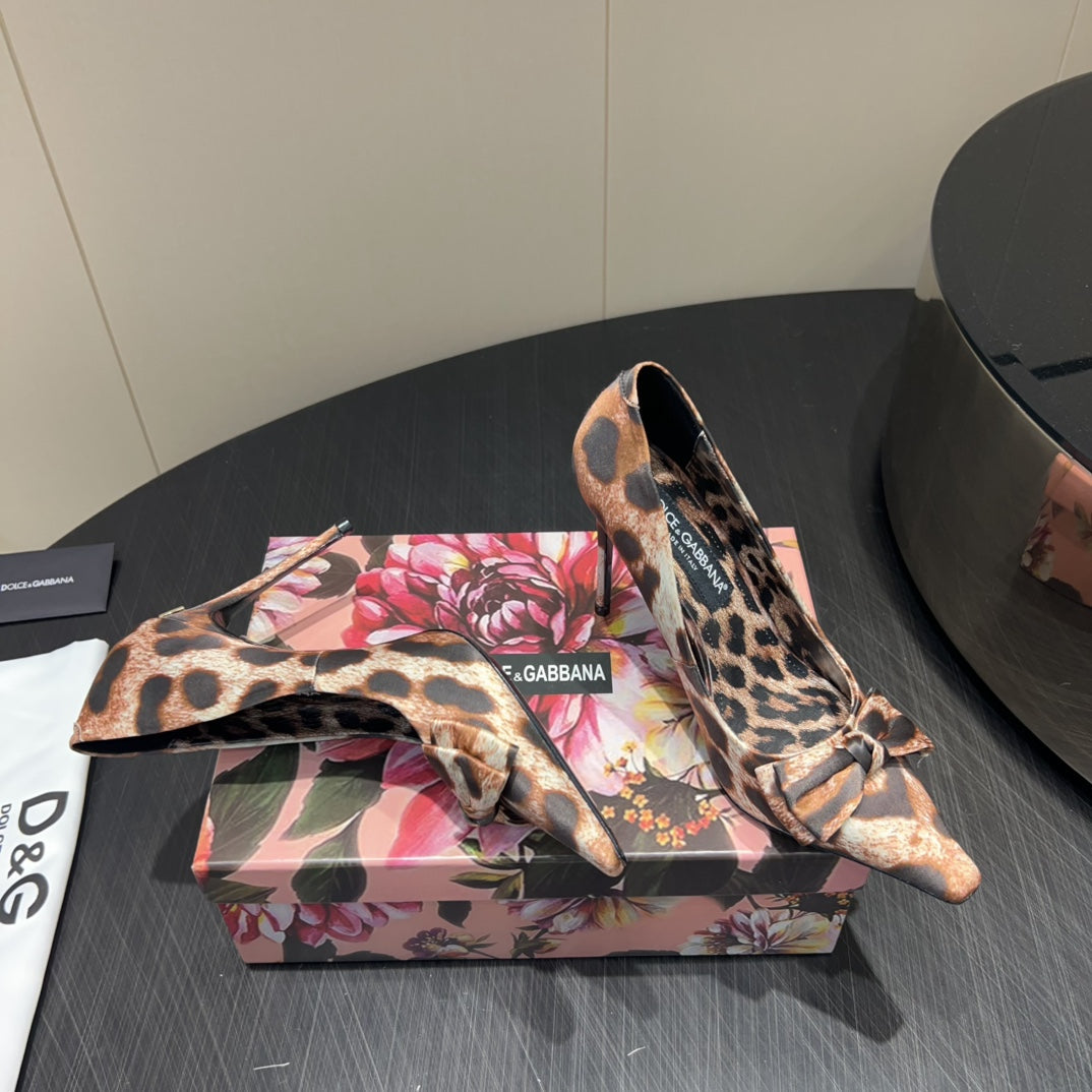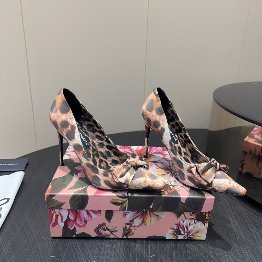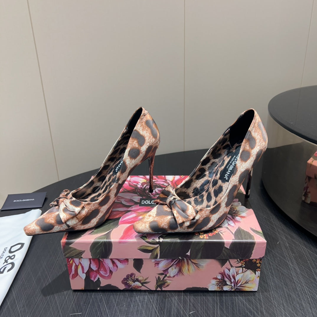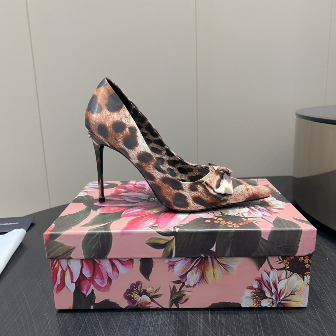 DC 25 Toe Bow High Heel Shoes 35mm Leopard-Print Silk And Sheepskin 381611