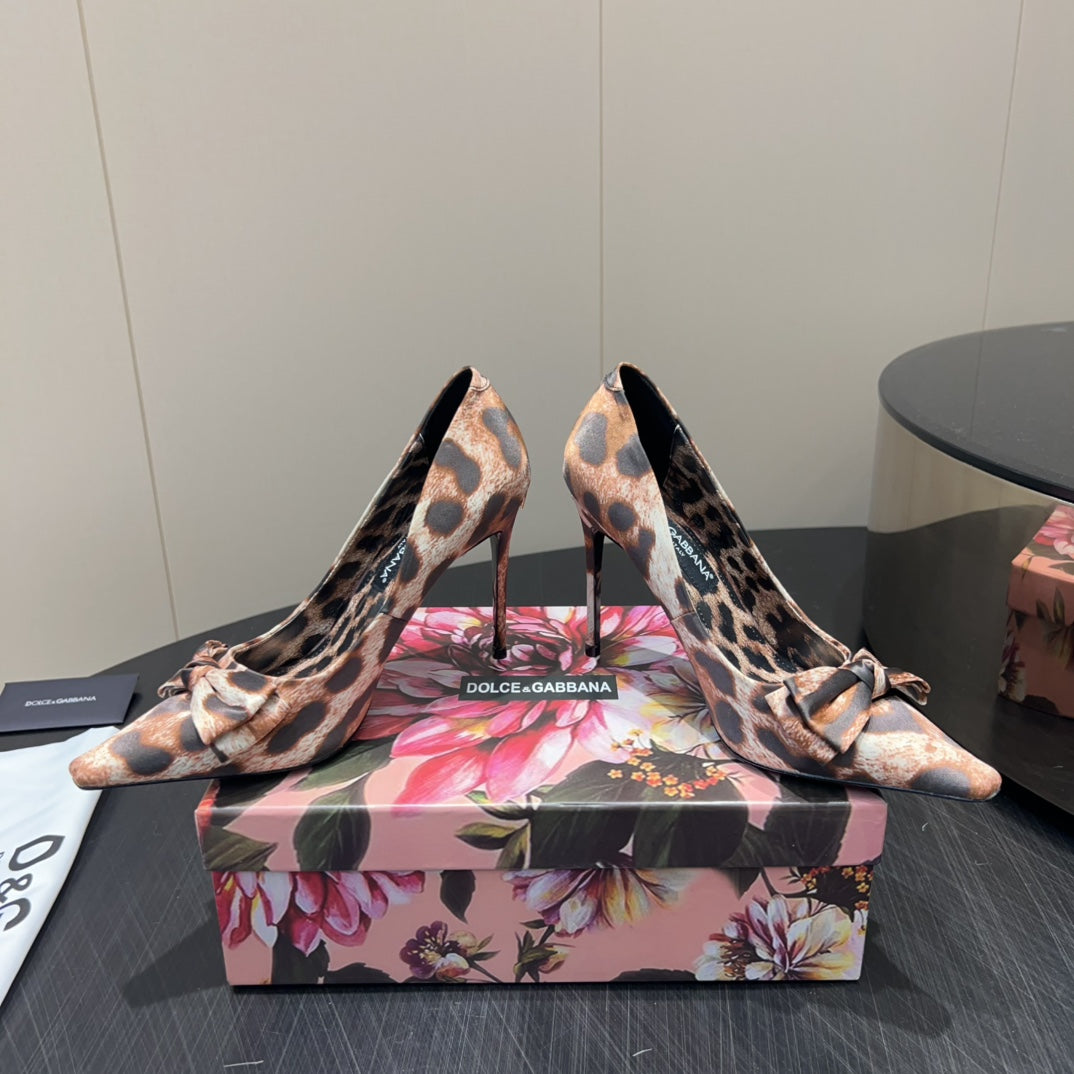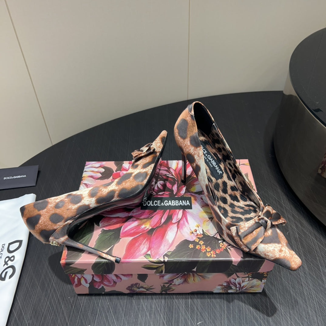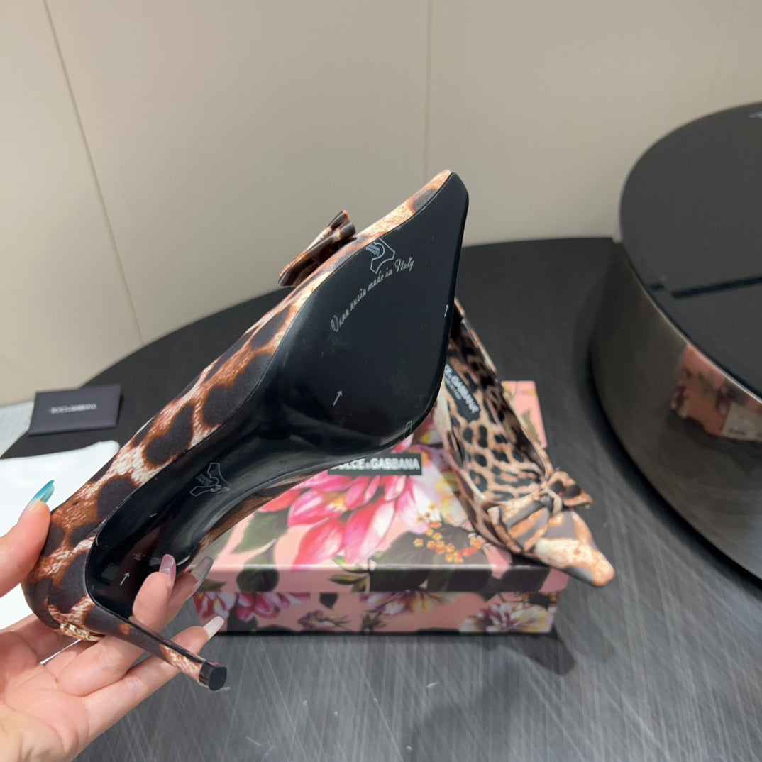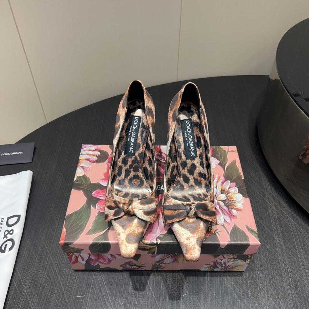 DC 25 Toe Bow High Heel Shoes 35mm Leopard-Print Silk And Sheepskin 381611