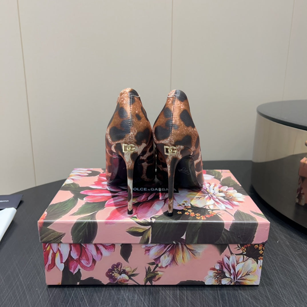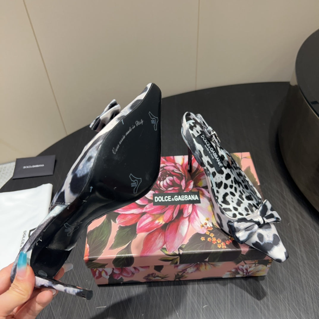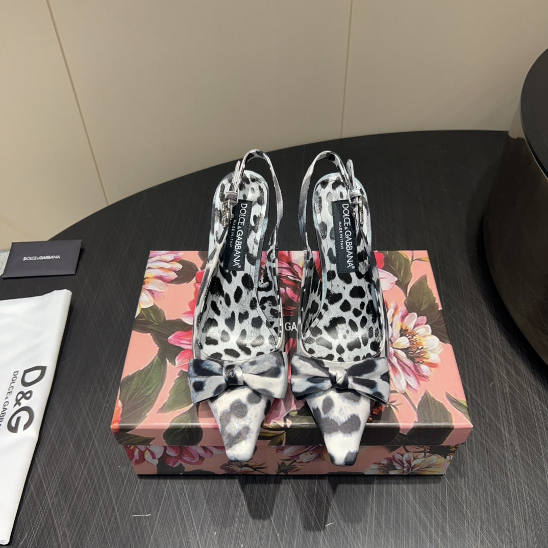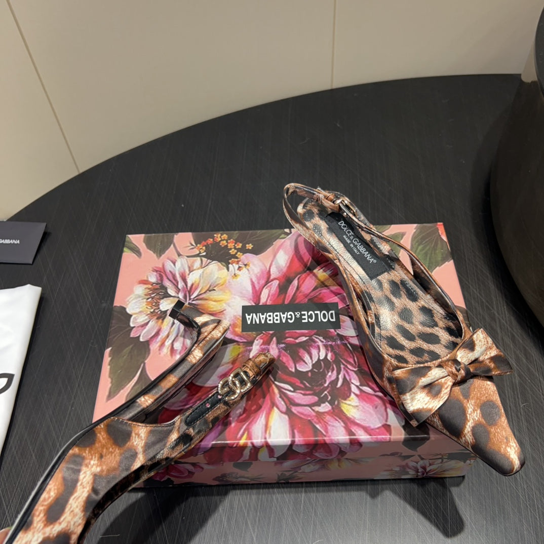 DC 25 Toe Bow High Heel Shoes 35mm Leopard-Print Silk And Sheepskin 381611