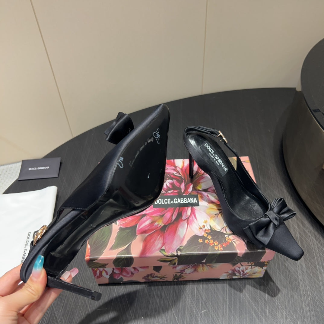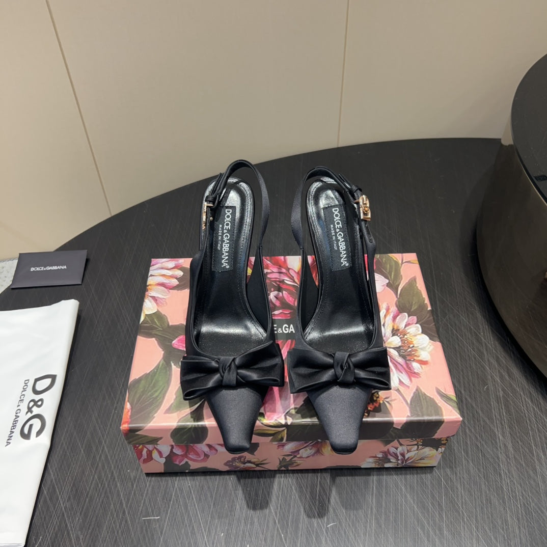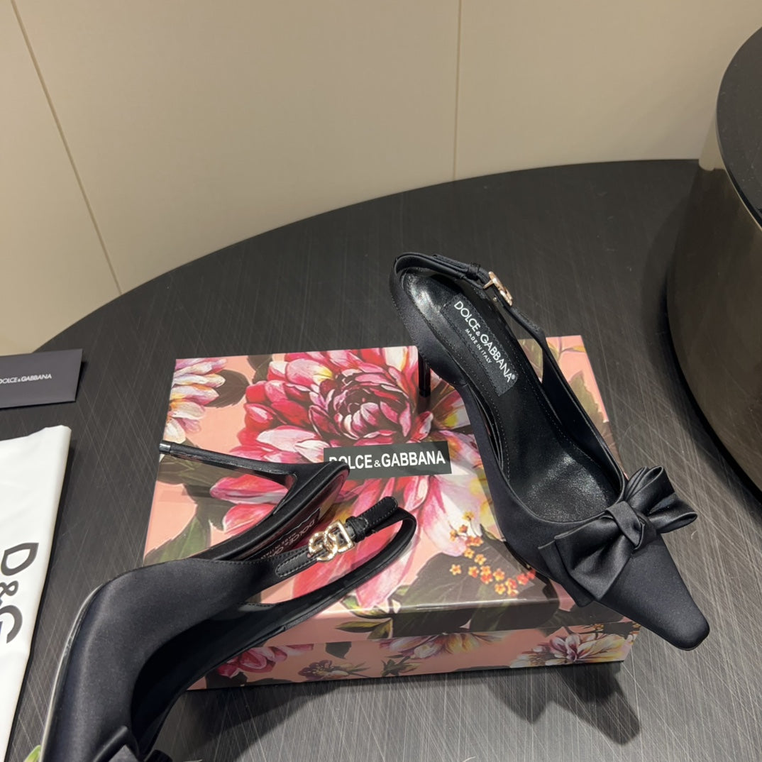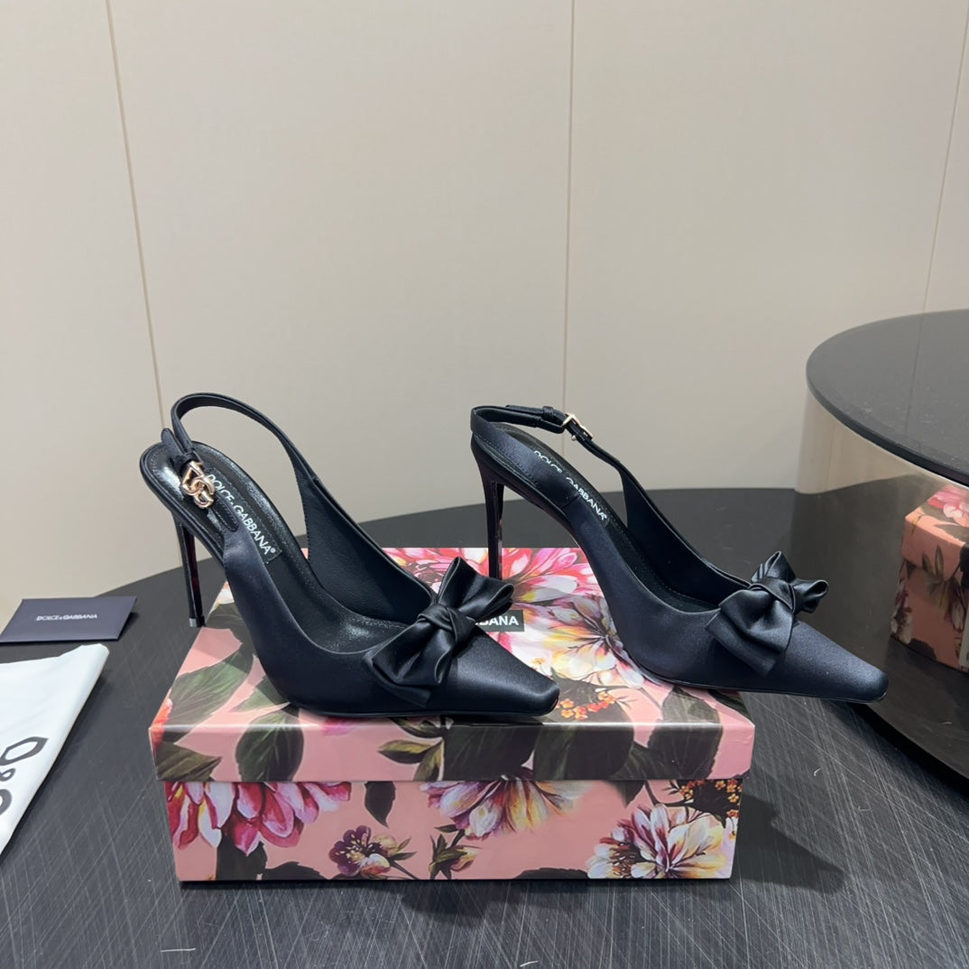 DC 25 Toe Bow Slingback Pumps 100mm Black Silk And Sheepskin 381612