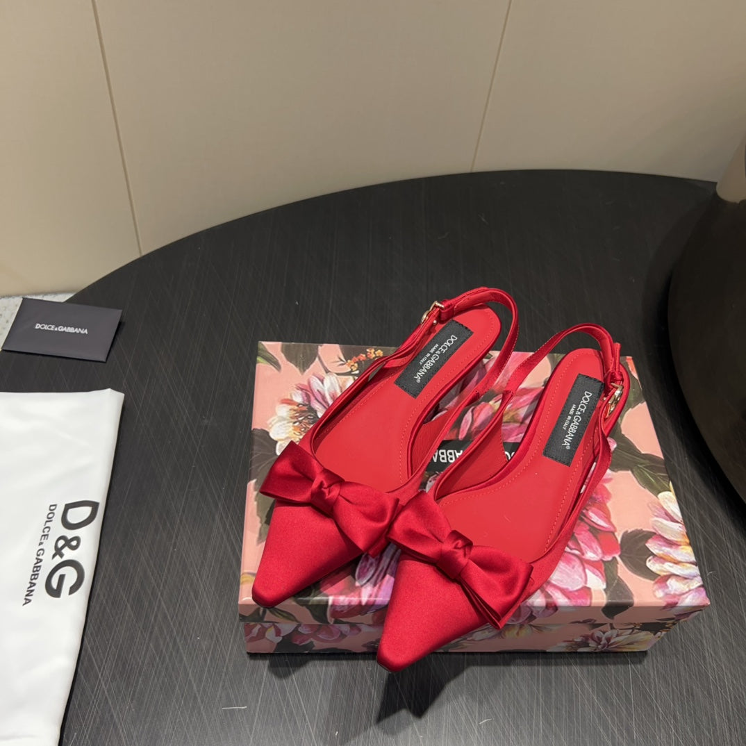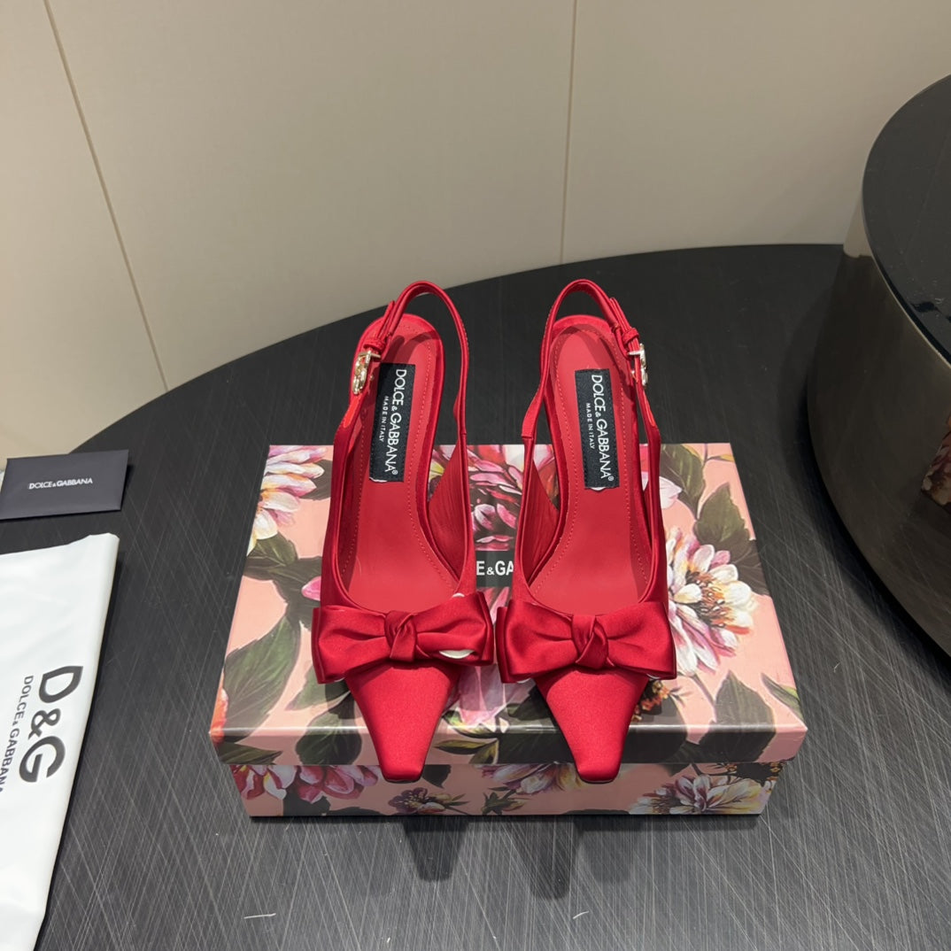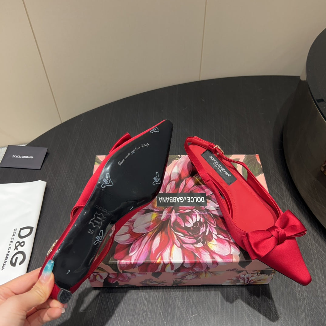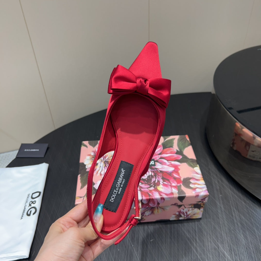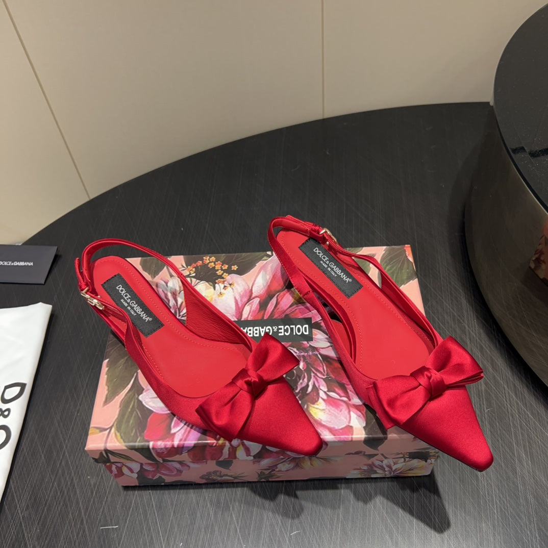DC 25 Bow Slingback Pumps Red Silk And Sheepskin 381617