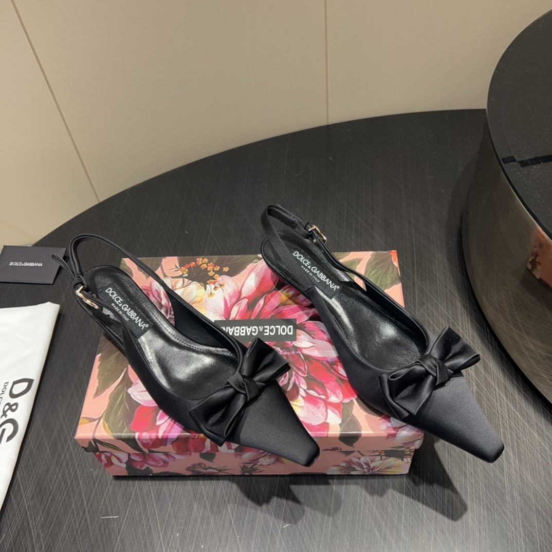 DC Bow Slingback Pumps 30mm Black Satin & Sheepskin 359511
