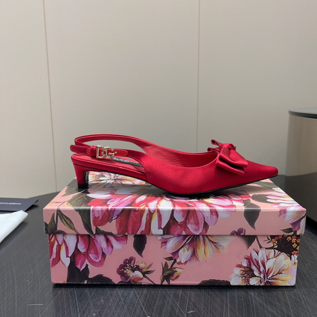 DC 25 Bow Slingback Pumps 30mm Red Satin & Sheepskin 359510