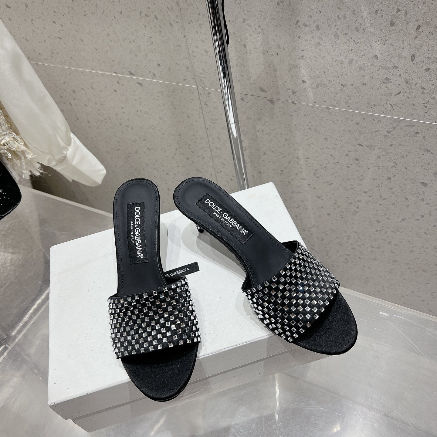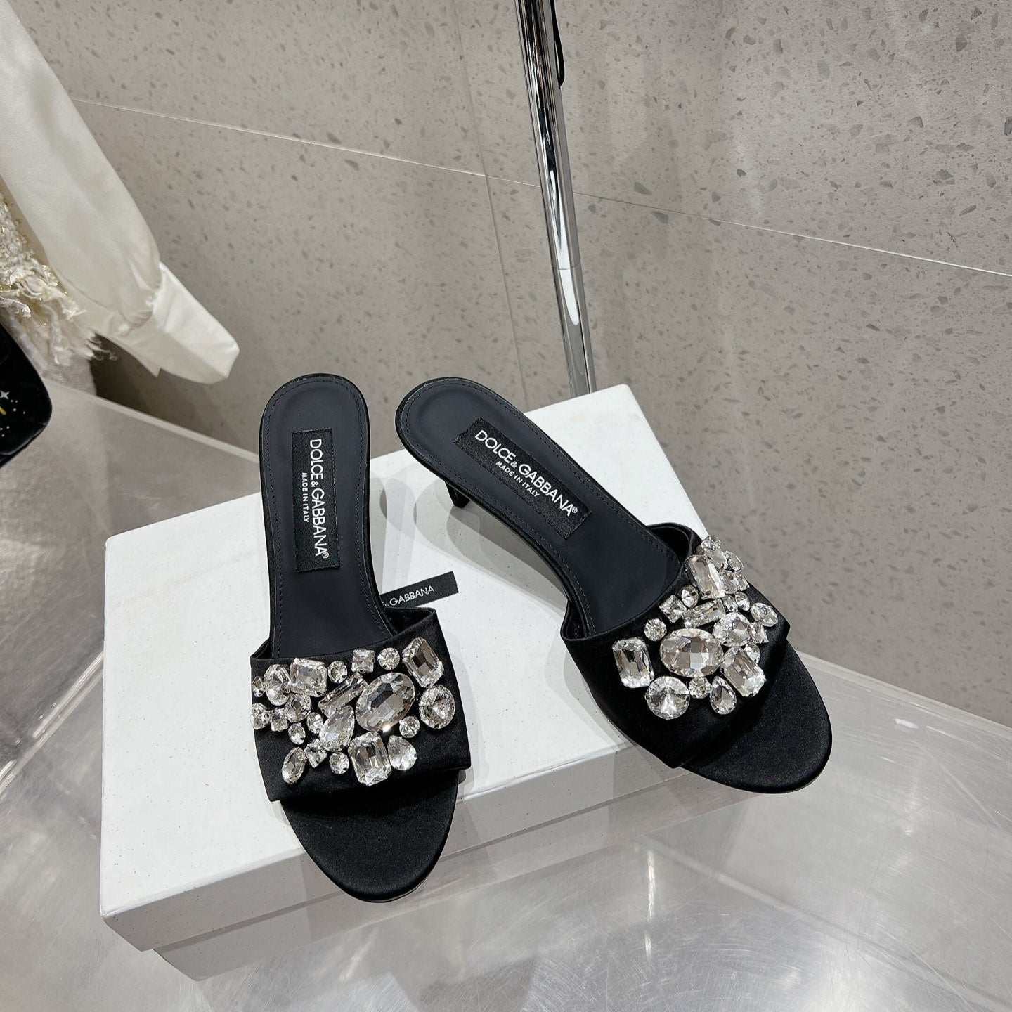 DC Rhinestone Mules 65mm Black Silk & Sheepskin 359514