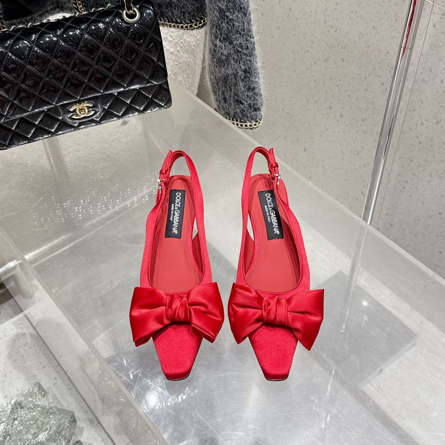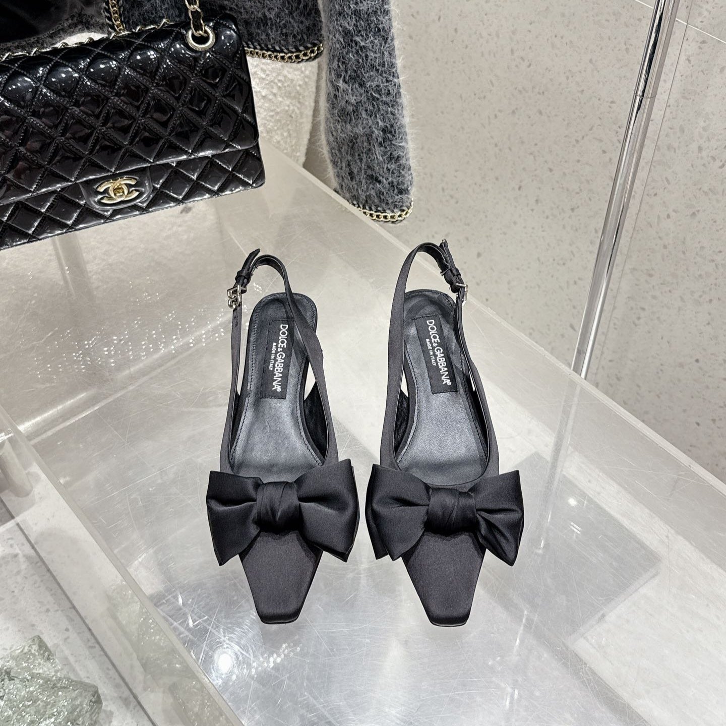 DC 25 Bow Slingback Pumps Black Silk And Sheepskin 381616