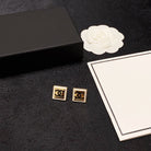 CC LIGHT GOLD AND WHITE ENAMEL SQUARE EARRINGS