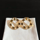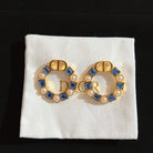 CD EARRINGS GOLD-FINISH METAL WITH RESIN PEARLS AND AMBER-COLORED CRYSTALS