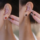 CLOVER MINI DIAMOND LONG STUD EARRINGS