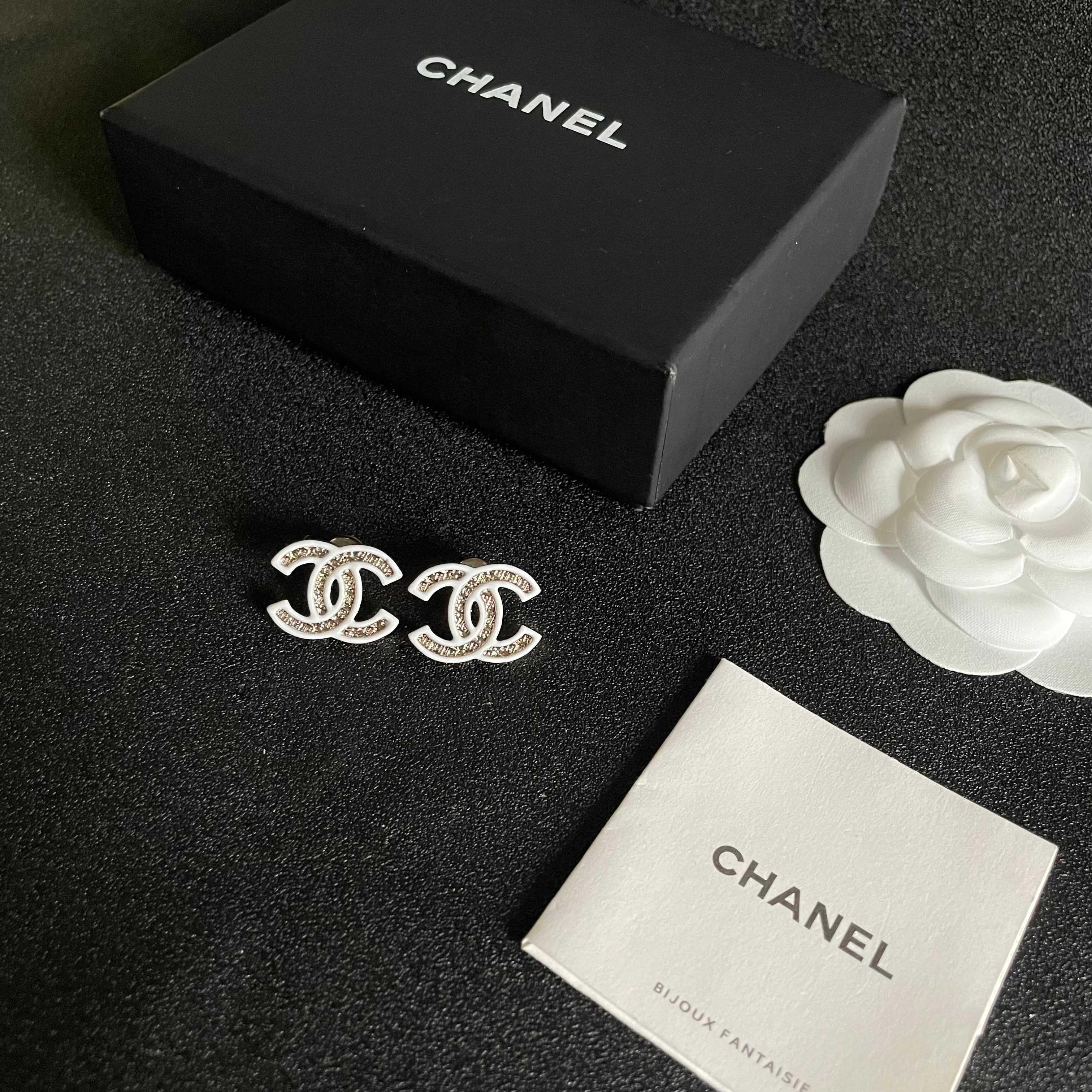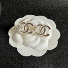 DOUBLE C STUD EARRINGS WITH WHITE TRIM AND CENTER STONE