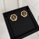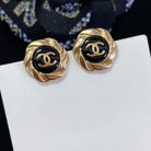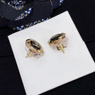 DOUBLE C MINI STUD GOLD BLACK EARRINGS