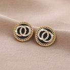 DOUBLE CIRCLE DIAMOND ONYX STUD EARRINGS