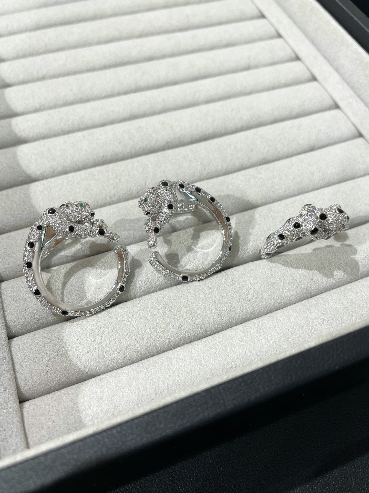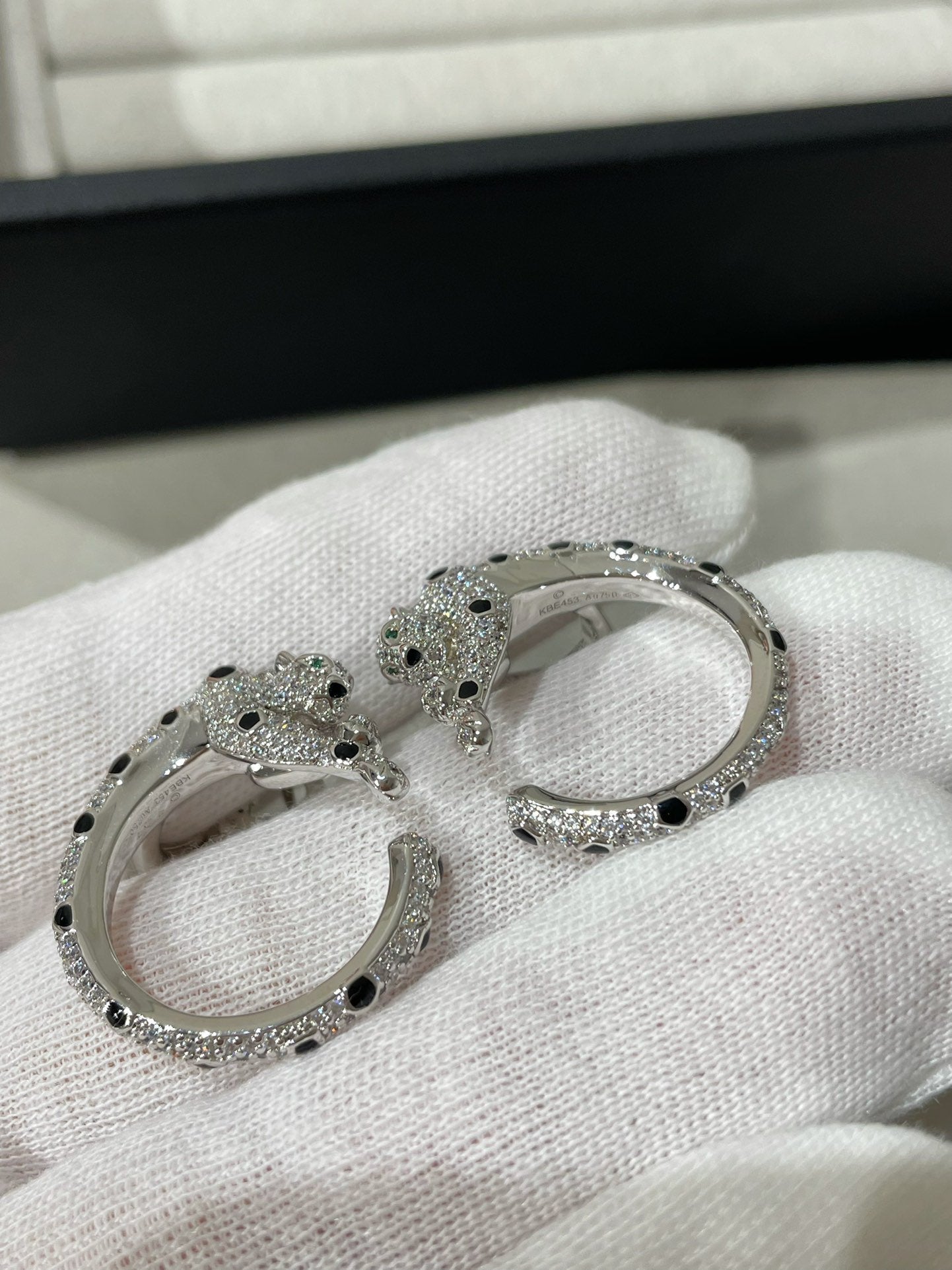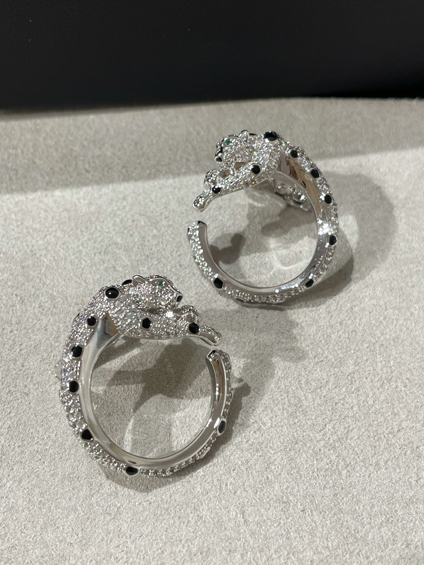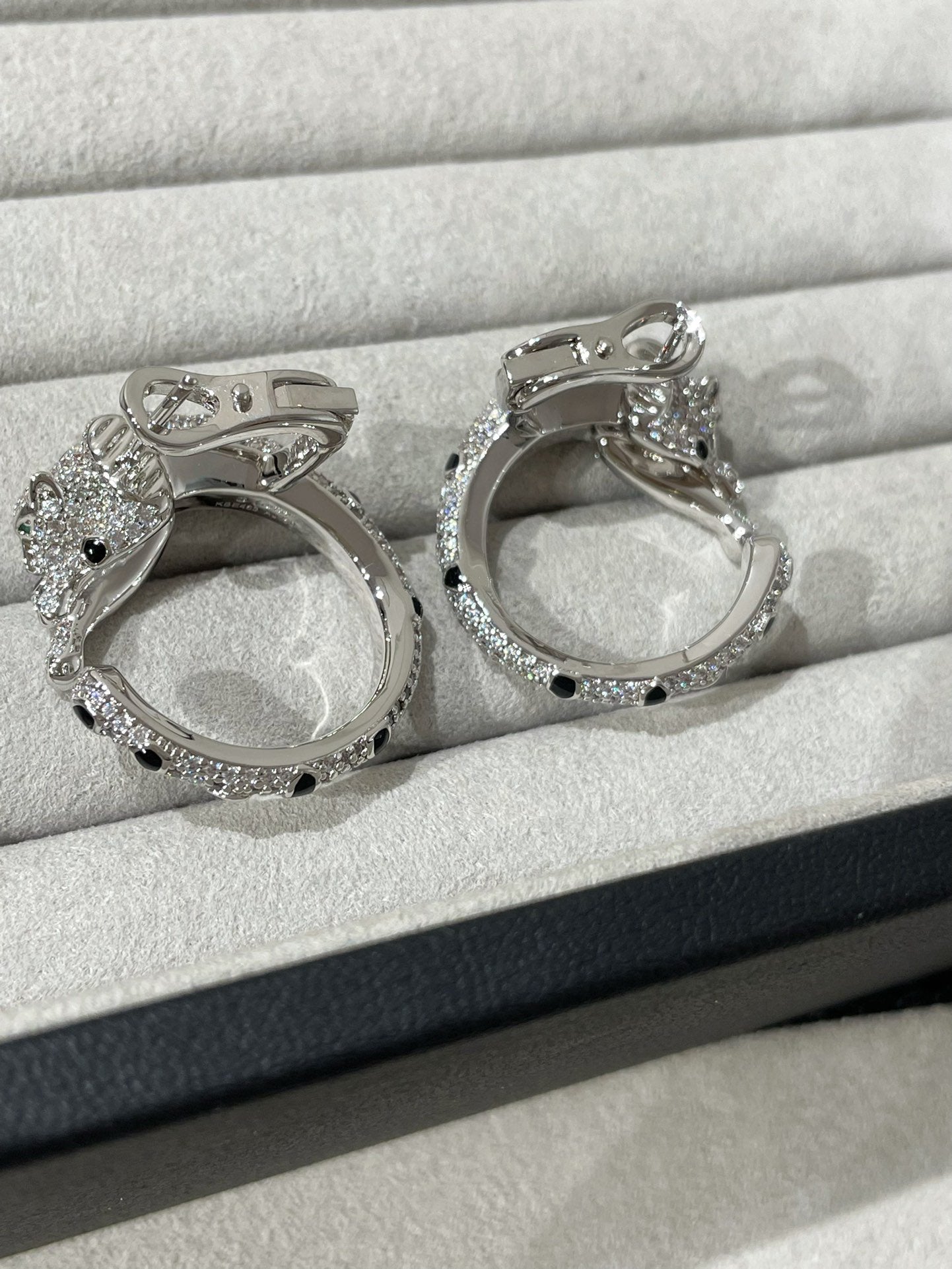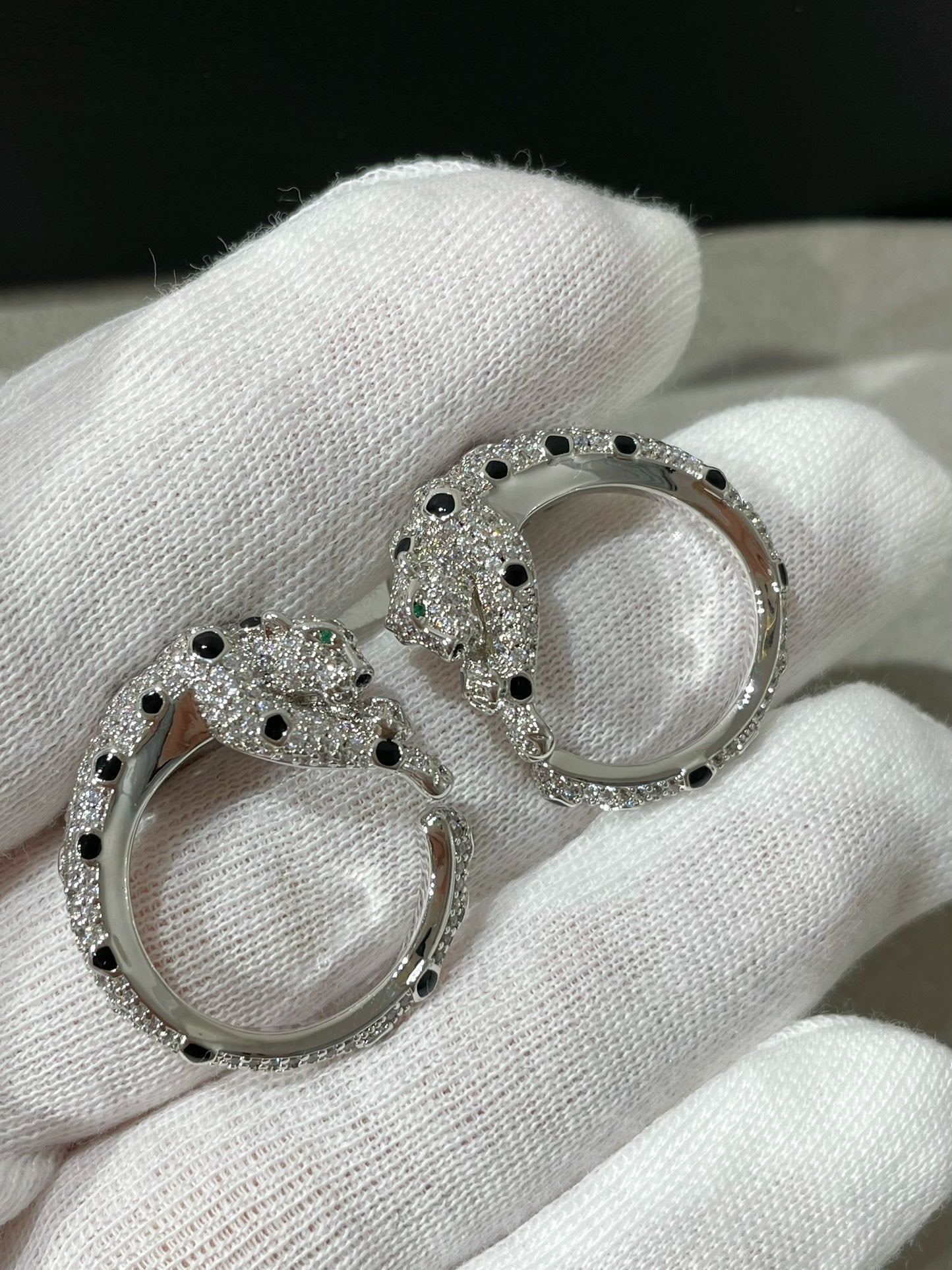 PANTHERE DIAMOND ONYX GREEN EMERAL SILVER EARRINGS
