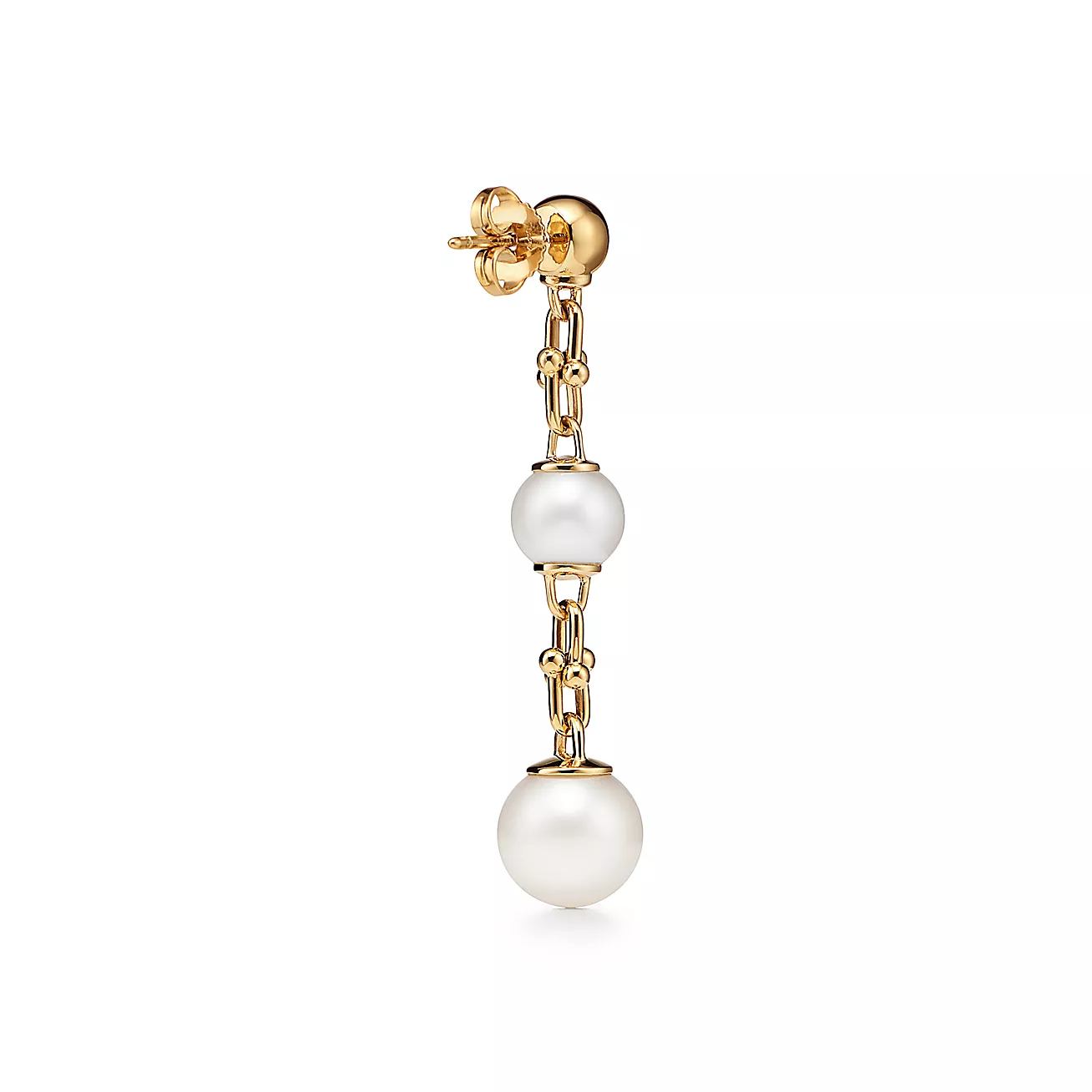 TRIPLE DROP LINK EARRINGS GOLD WITH FRESHWATER PEARLS