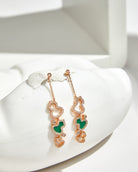 WULU 3 MOTIF DROP DIAMOND PINK GOLD EARRINGS