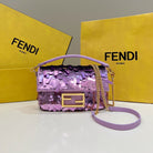 BAGUETTE MINI 19 IN PERIWINKLE PURPLE SEQUINS GOLD HARDWARE