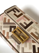 Fend Baguette White Brown and Multicolour Canvas Bag 27 with FF Embroidery Ghw