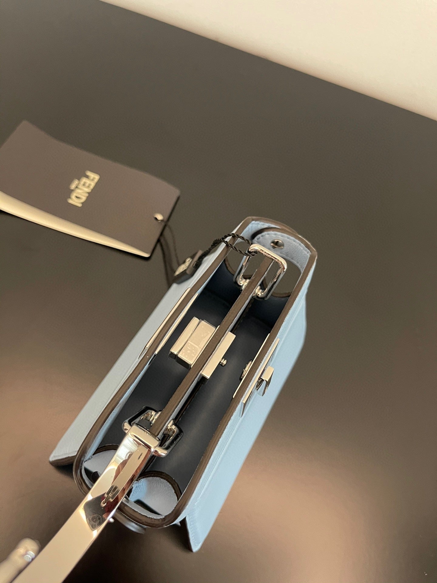 FENDI PEEKABOO ISEEU MICRO 12 BAG IN LIGHT BLUE CALFSKIN WITH GOLD HARDWARE