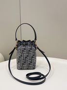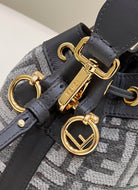 MON TRESOR MINI 18 BAG IN BLACK MIX GREY FF FABRIC WITH GOLD HARDWARE