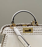 PEEKABOO ISEEU 27 IN WHITE SMOOTH CALFSKIN WITH WOVEN TRIM GOLD HARDWARE