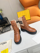 FENDI MARTIN BOOTS IN BRONZE BROWN CALFSKIN AND FUR