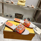FF Women Roma Signature Orange Grey Canvas Leather Slide