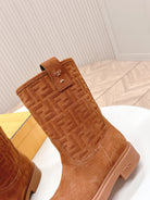 Fendi 25 Short Boots Caramel Brown Suede 500934
