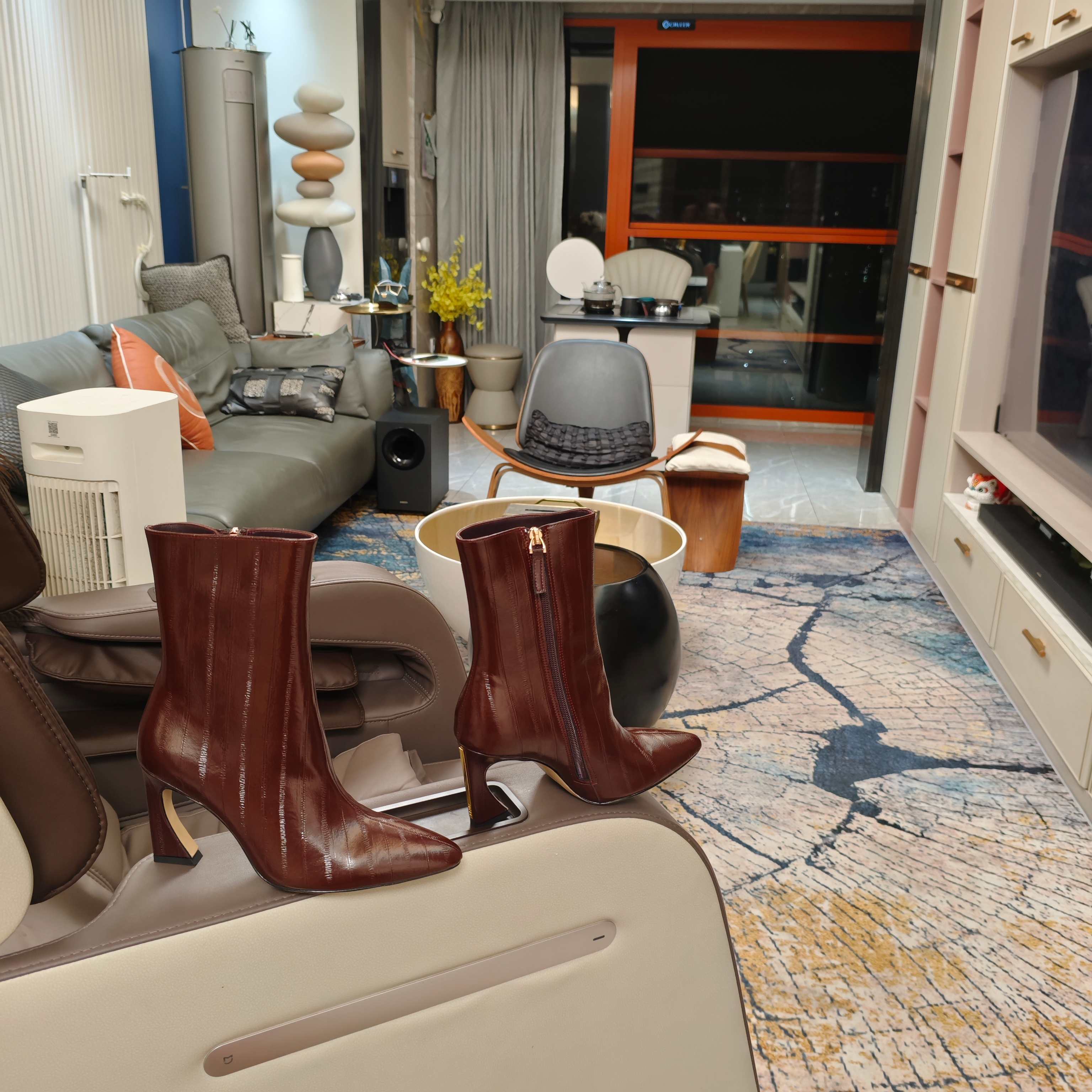 Fendi 25ss High-Heeled Boots Burgundy Sheepskin 502715
