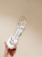 FENDI BAGUETTE HIGH HEELS 85MM IN WHITE LAMBSKIN WITH GOLD HARDWARE