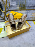 FENDI BAGUETTE LOAFERS IN BEIGE MIX BROWN CANVAS GOLD HARDWARE