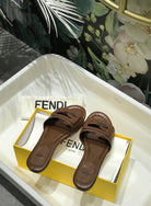 FENDI BAGUETTE SLIDES IN COFFEE BROWN LAMBSKIN