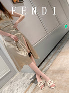 FENDI BAGUETTE SLIDES IN WHITE LAMBSKIN