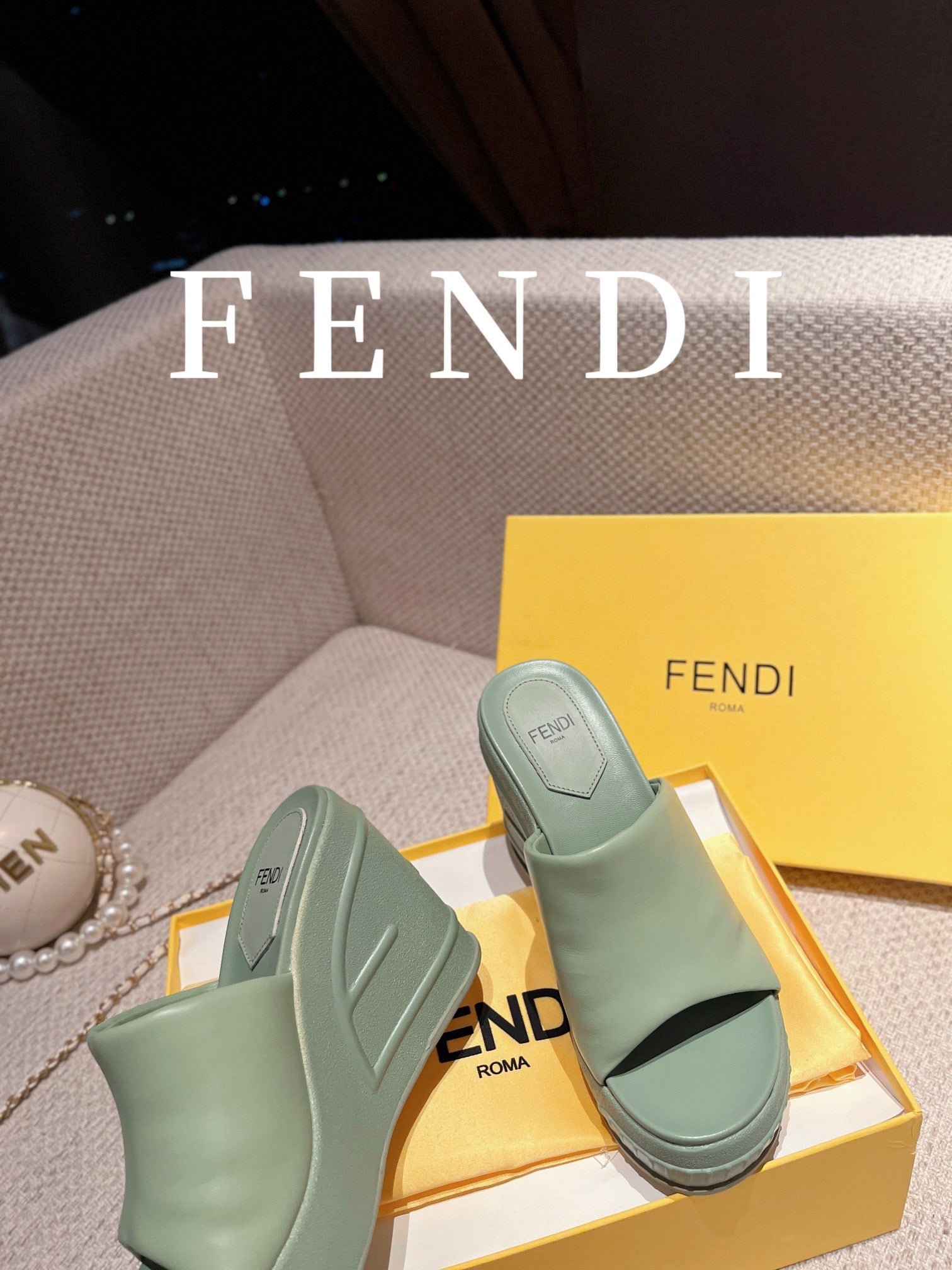 FENDI BAGUETTE WEDGE PLATFORM 85MM IN SEAFOAM GREEN CALFSKIN