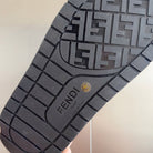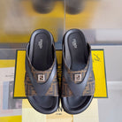 FENDI DIAGONAL ONE-STRAP SLIDE IN BLACK MIX BROWN MONOGRAM CALFSKIN