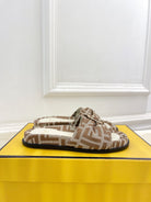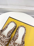 FENDI FLAT SLIPPER IN BROWN MONOGRAM JACQUARD FABRIC WITH GOLD HARDWARE