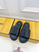 FENDI LOGO SLIDES IN BLACK CALFSKIN
