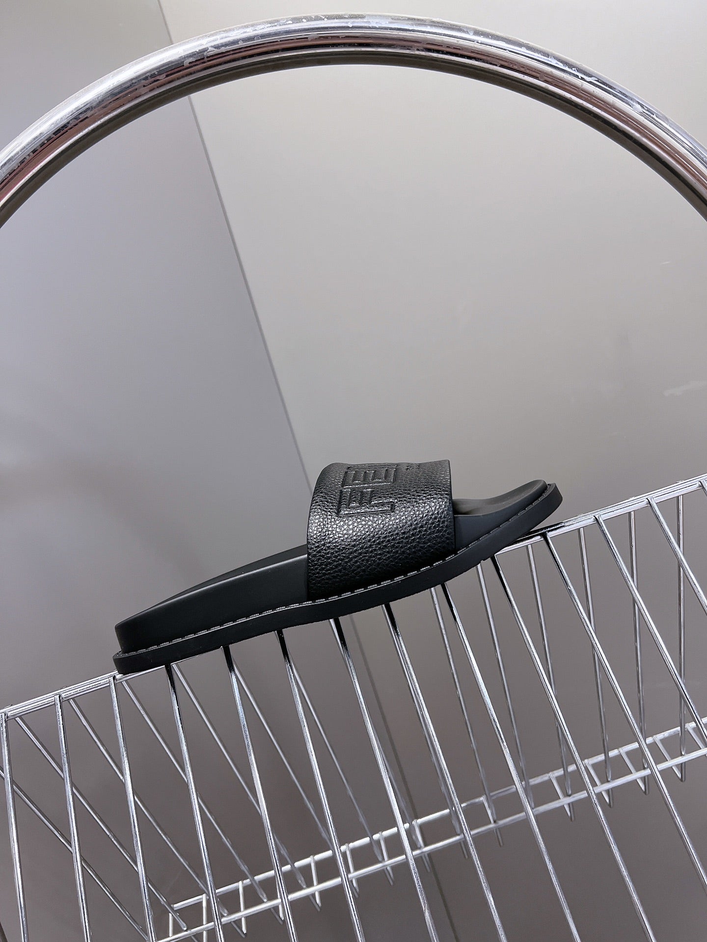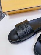 FENDI ROMA SLIDES IN BLACK LAMBSKIN LEATHER