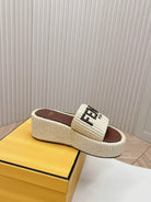 FENDI SIGNATURE WEDGE PLATFORM 6 CM IN BEIGE FIBRE WITH BROWN EMBROIDERED LOGO