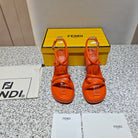 FENDI CHUNKY HIGH-HEELED SANDAL IN ORANGE RED CALFKIN WITH GOLD HARDWARE