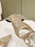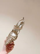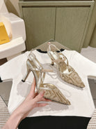 FENDI COLIBRÌ HIGH-HEELED SLINGBACKS 75MM IN LIGHT GOLD FABRIC
